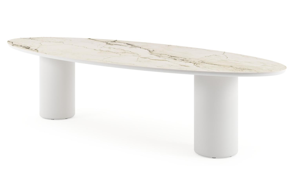 Amico tuintafel ovaal in wit aluminium en volkeramiek Colorado Dunes - L 320 x B 130 x H 73.5 cm | Exterioo