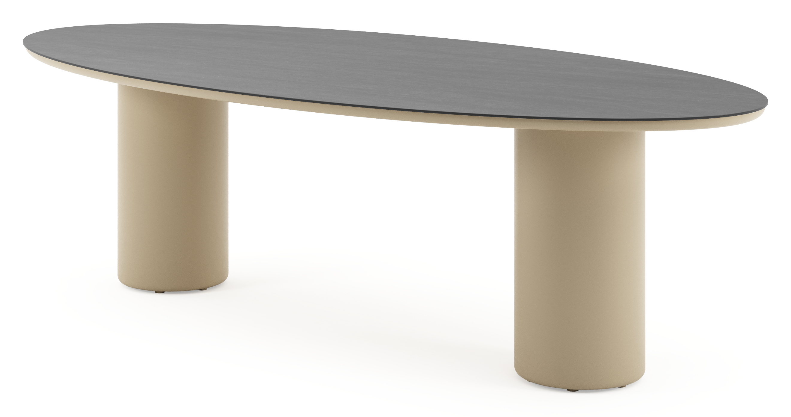 Amico tuintafel ovaal in beige aluminium en volkeramiek Basalt Black - L 260 x B 125 x H 73.5 cm | Exterioo tuinmeubelen