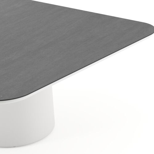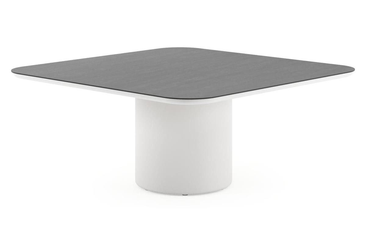 Amico low dining tuintafel afgerond vierkant in wit aluminium en volkeramiek Basalt Black - L 148 x B 148 x H 61 cm | Exterioo