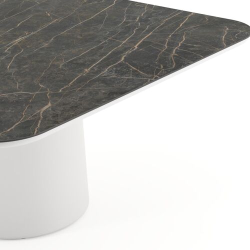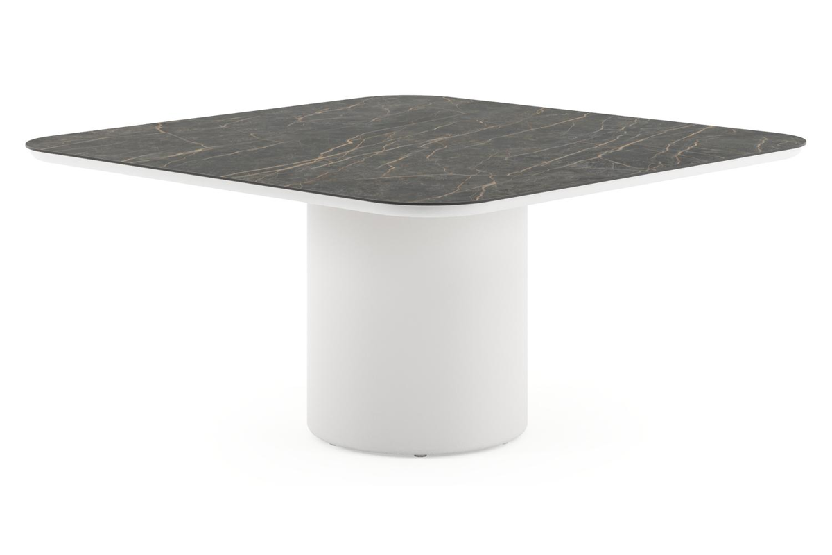 Amico tuintafel afgerond vierkant in wit aluminium en volkeramiek Black Obsession - L 148 x B 148 x H 73.5 cm | Exterioo