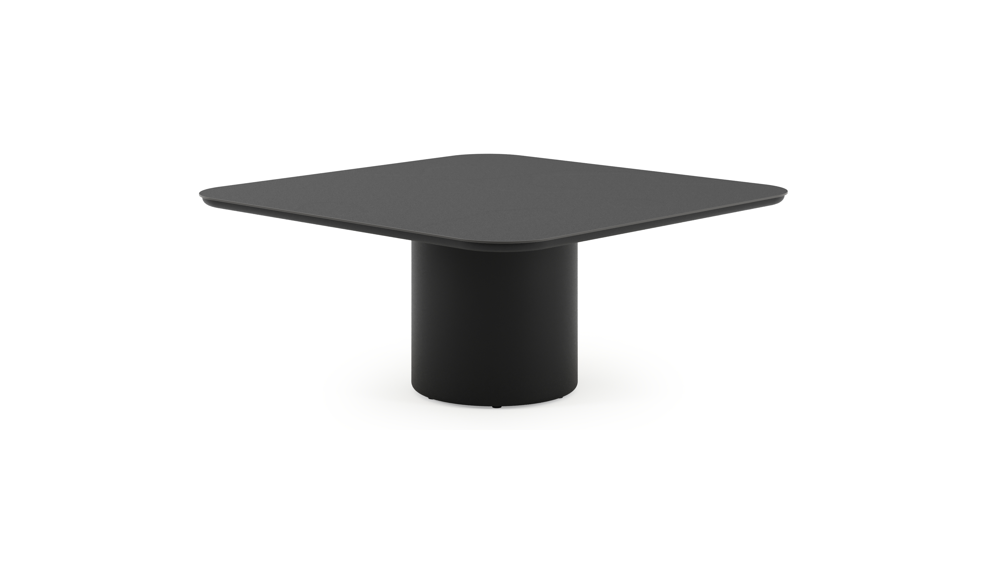 Amico low dining tuintafel afgerond vierkant in zwart aluminium en volkeramiek Nero Black - L 148 x B 148 x H 61 cm | Exterioo tuinmeubelen