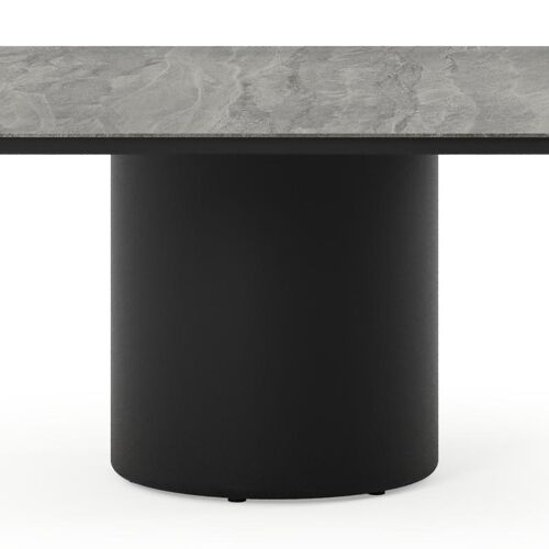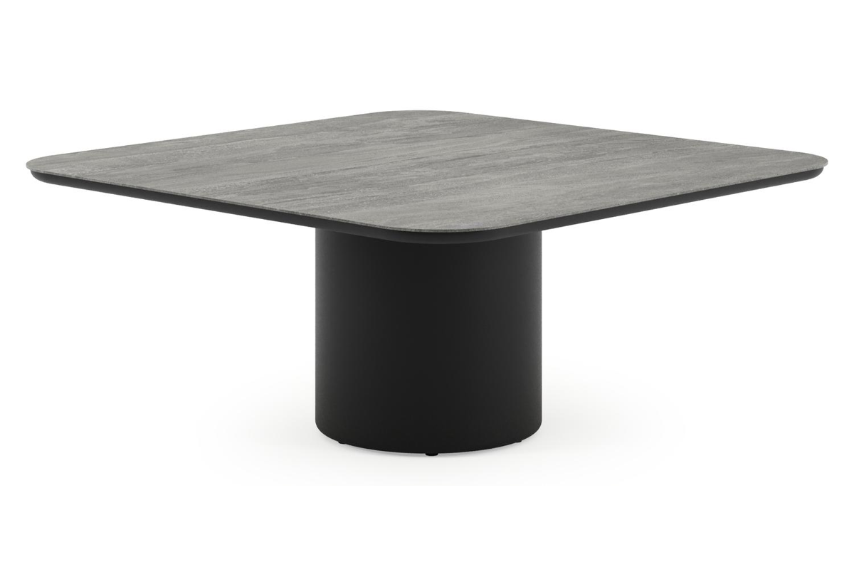 Amico low dining tuintafel afgerond vierkant in zwart aluminium en volkeramiek Aspen Grey - L 148 x B 148 x H 61 cm | Exterioo