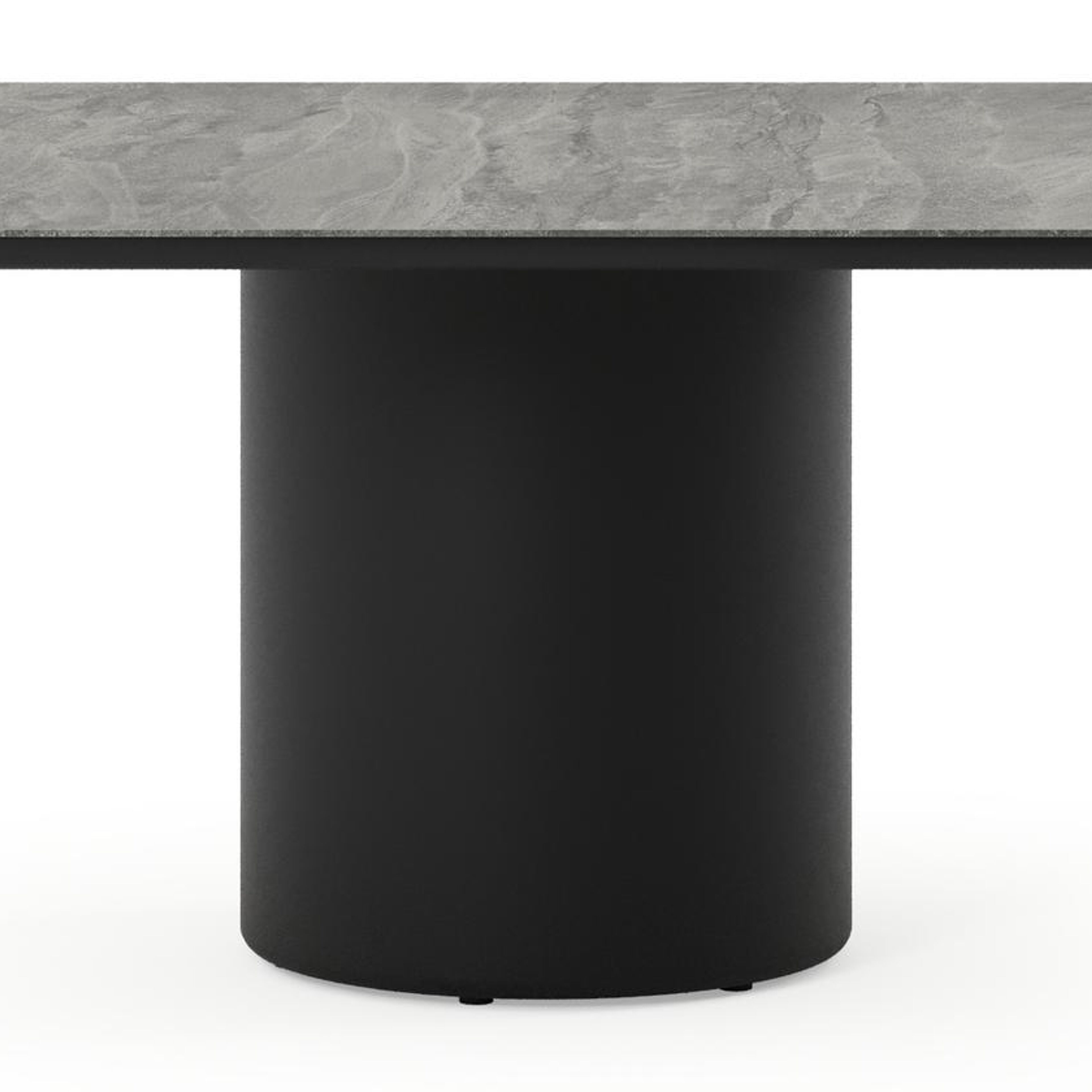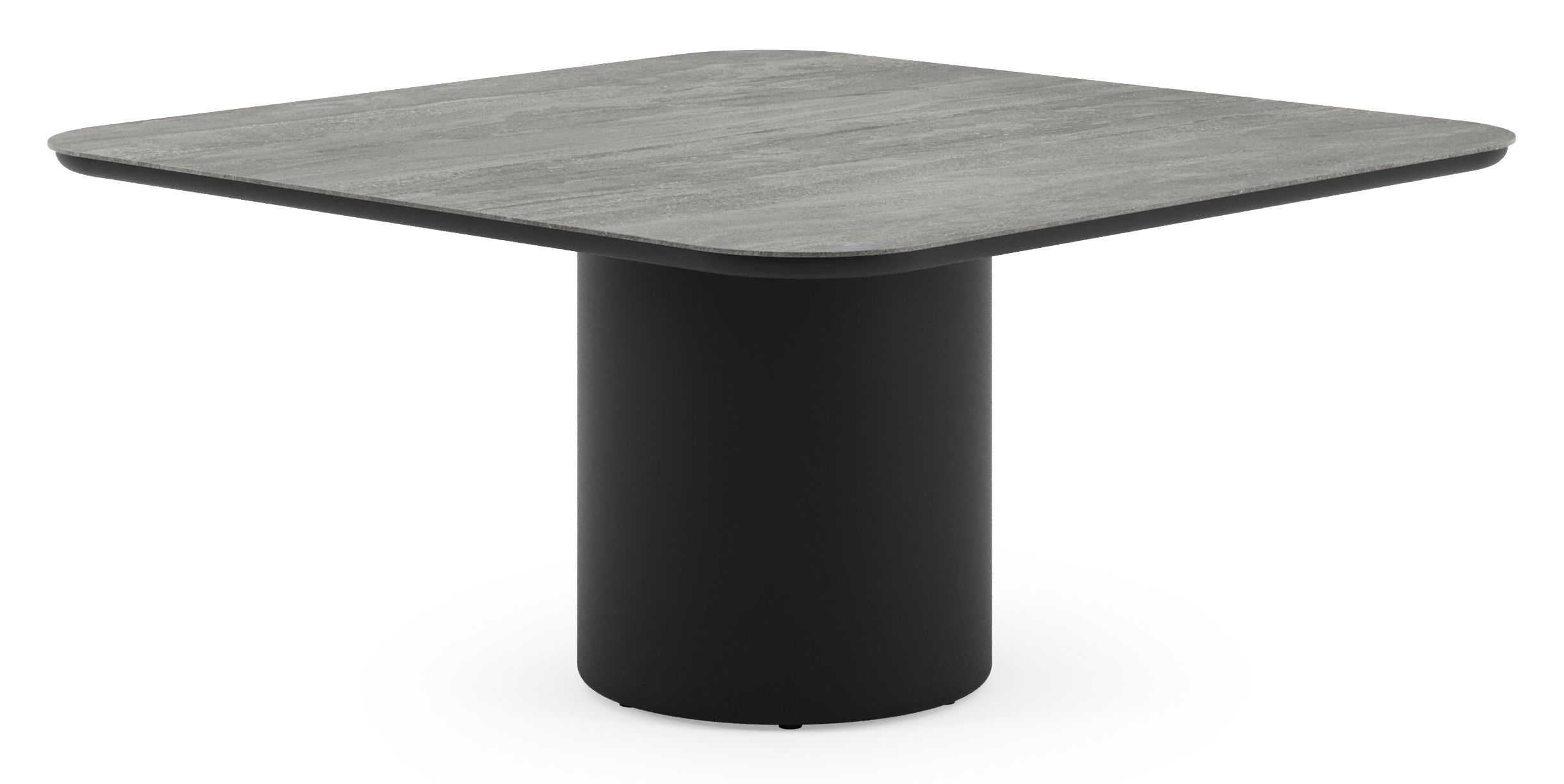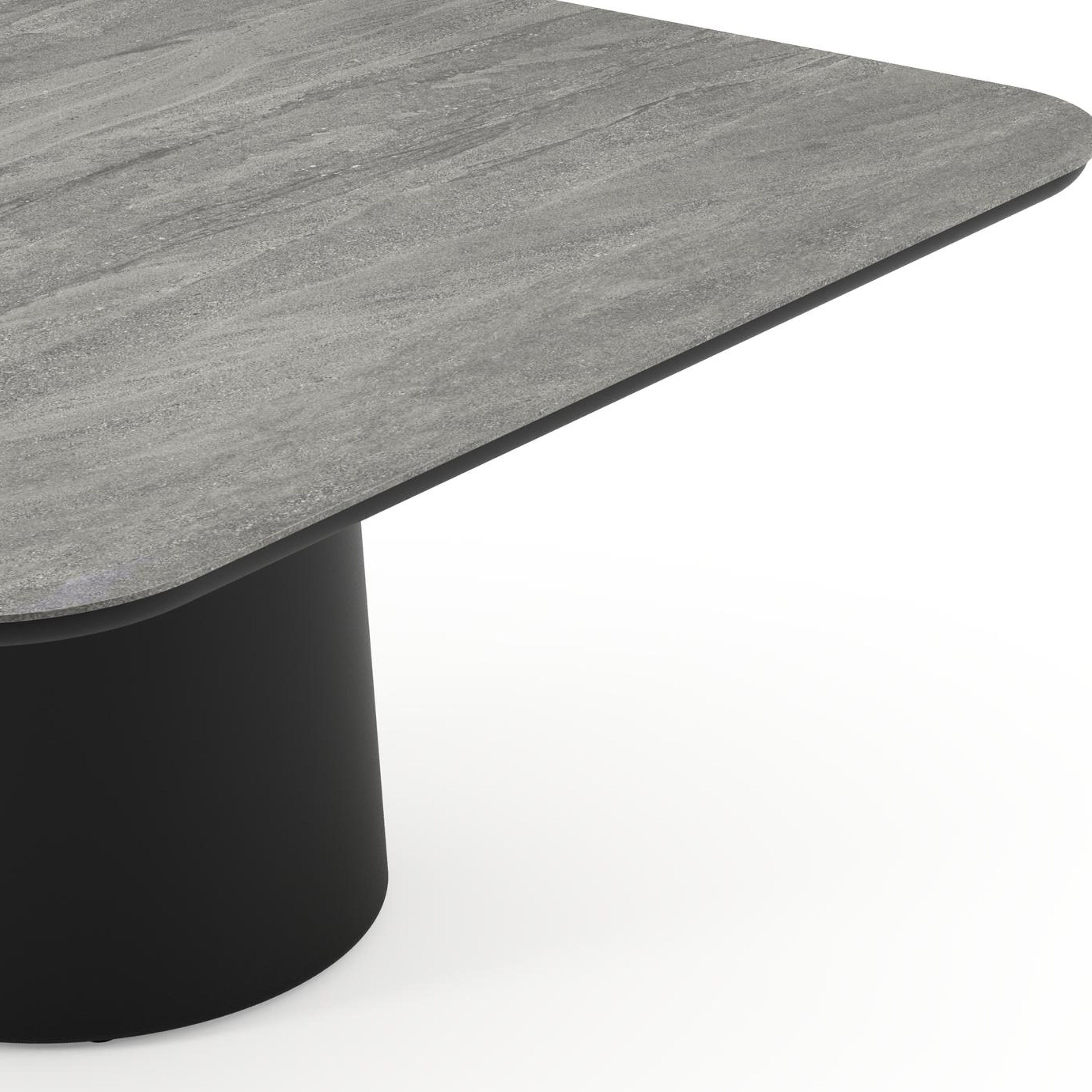 Amico tuintafel afgerond vierkant in zwart aluminium en volkeramiek Aspen Grey - L 148 x B 148 x H 73.5 cm | Exterioo tuinmeubelen