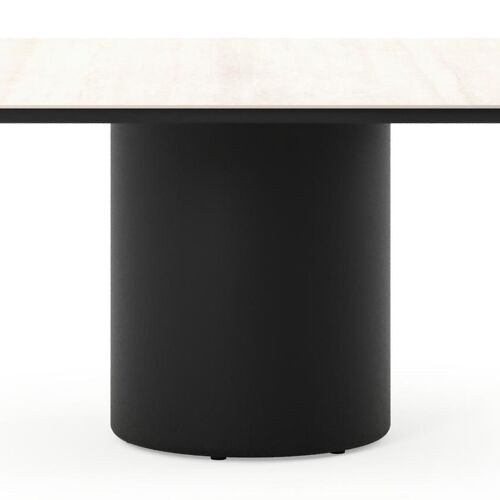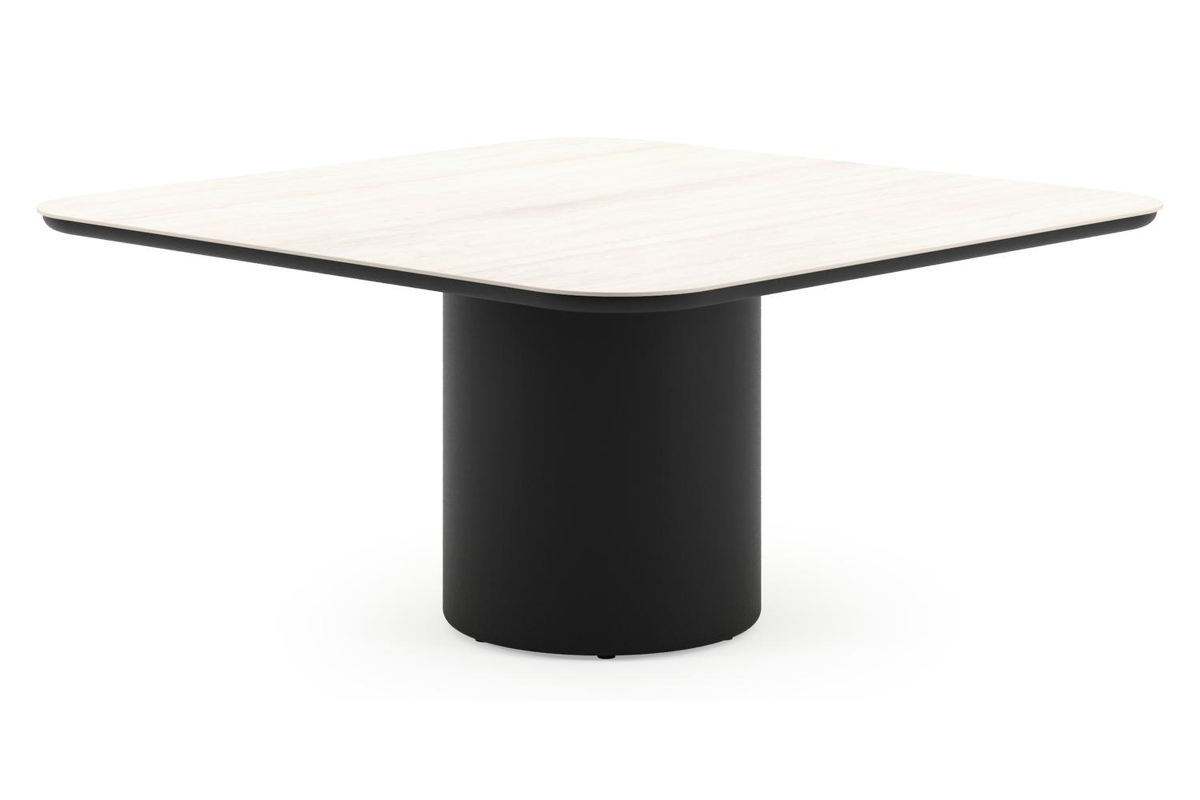 Amico tuintafel afgerond vierkant in zwart aluminium en volkeramiek Travertino Bianco - L 148 x B 148 x H 73.5 cm | Exterioo