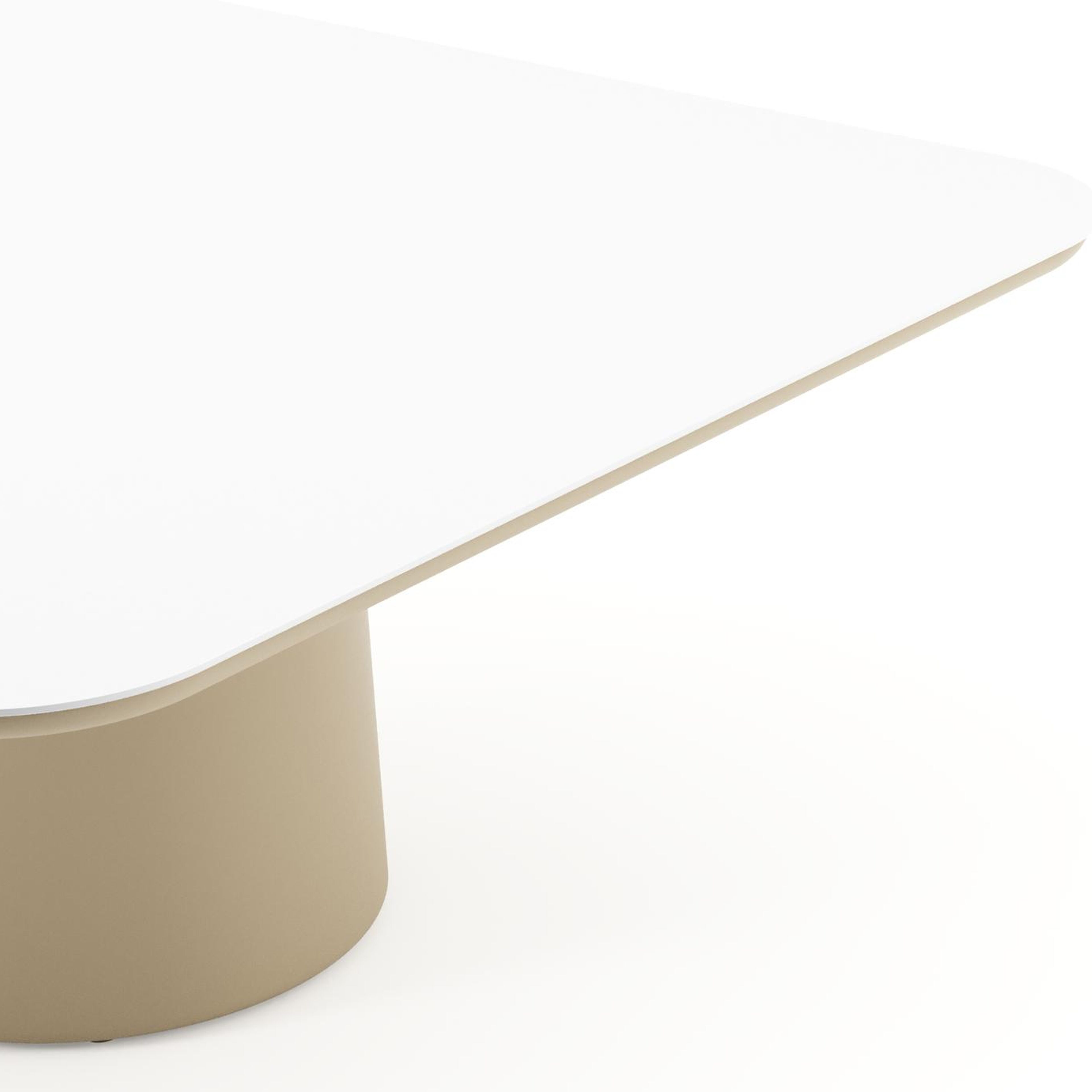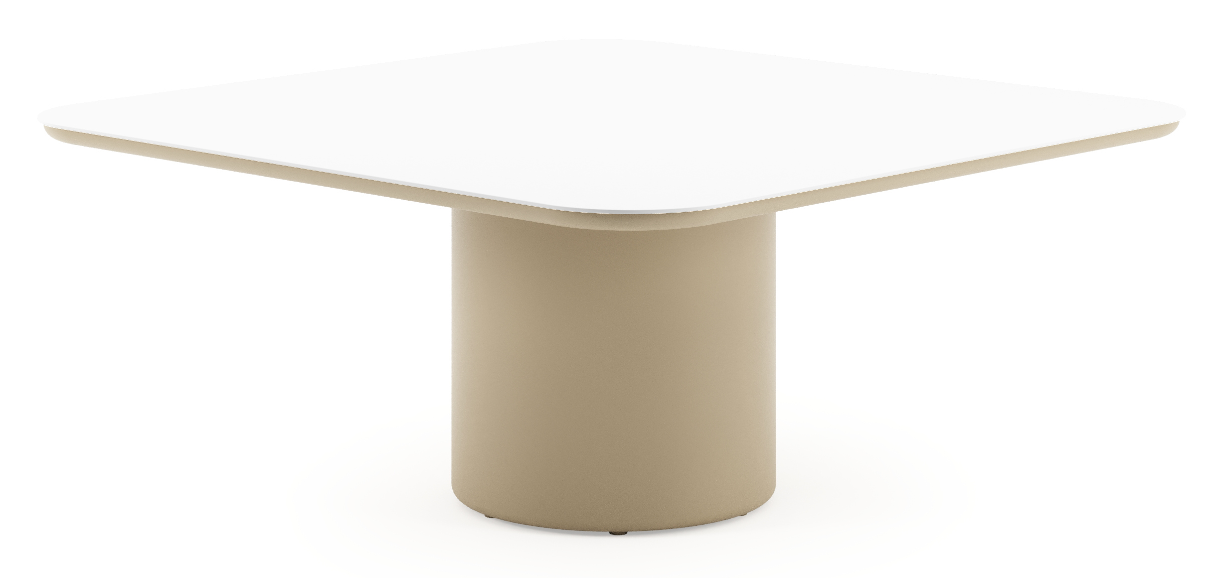 Amico low dining tuintafel afgerond vierkant in beige aluminium en volkeramiek Arctic White - L 148 x B 148 x H 61 cm | Exterioo tuinmeubelen