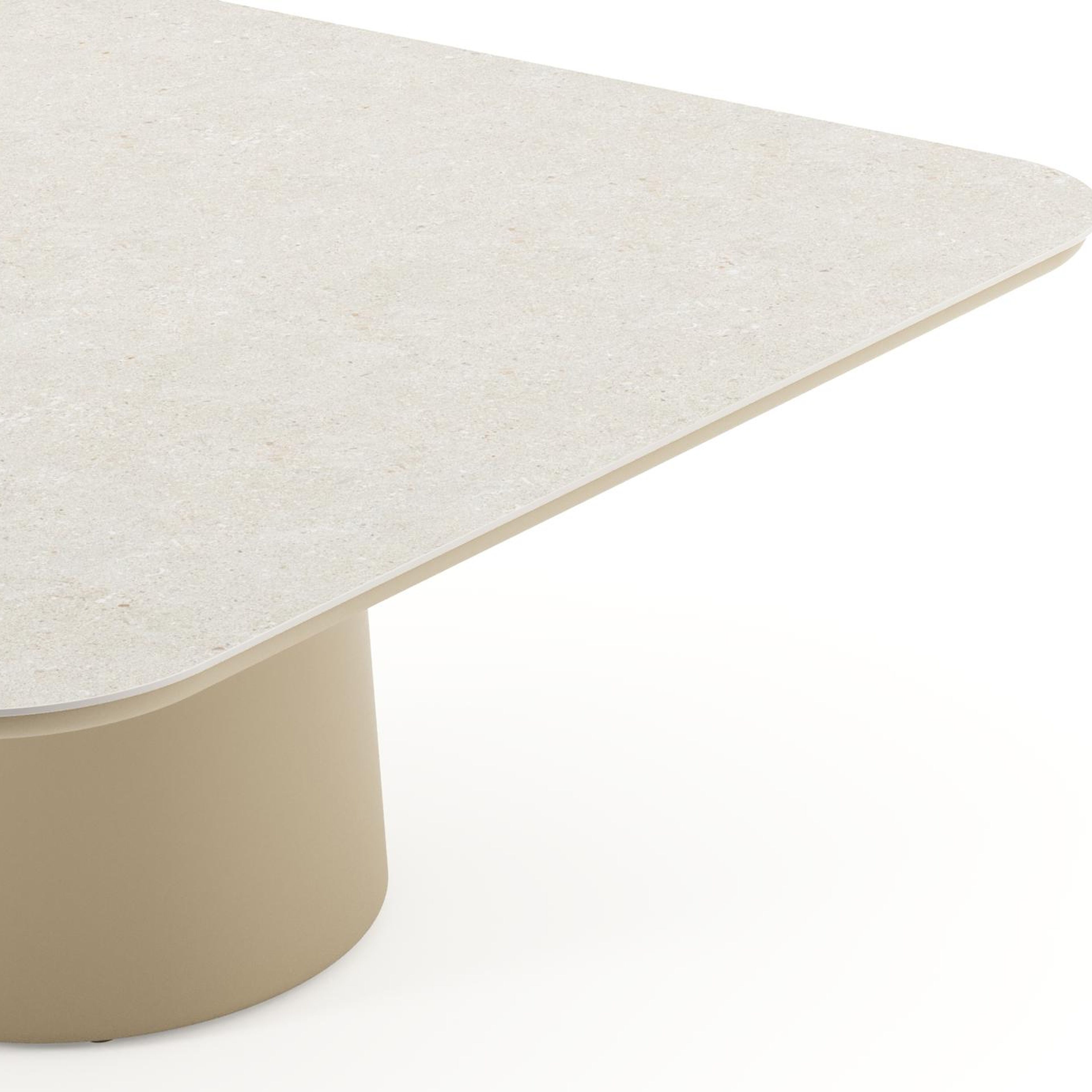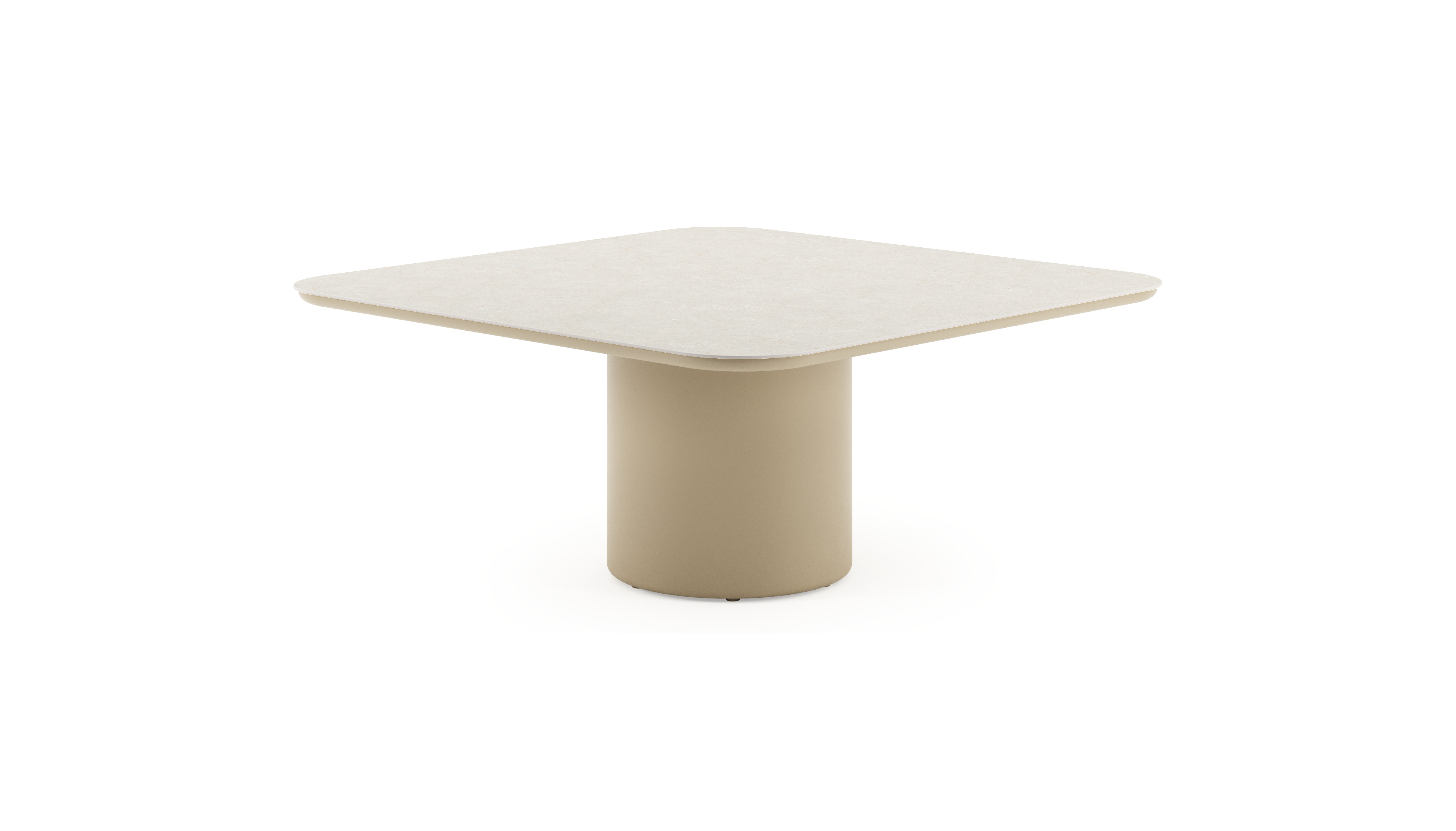 Amico low dining tuintafel afgerond vierkant in beige aluminium en volkeramiek Shilin - L 148 x B 148 x H 61 cm | Exterioo tuinmeubelen