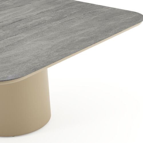 Amico tuintafel afgerond vierkant in beige aluminium en volkeramiek Aspen Grey - L 148 x B 148 x H 73.5 cm | Exterioo