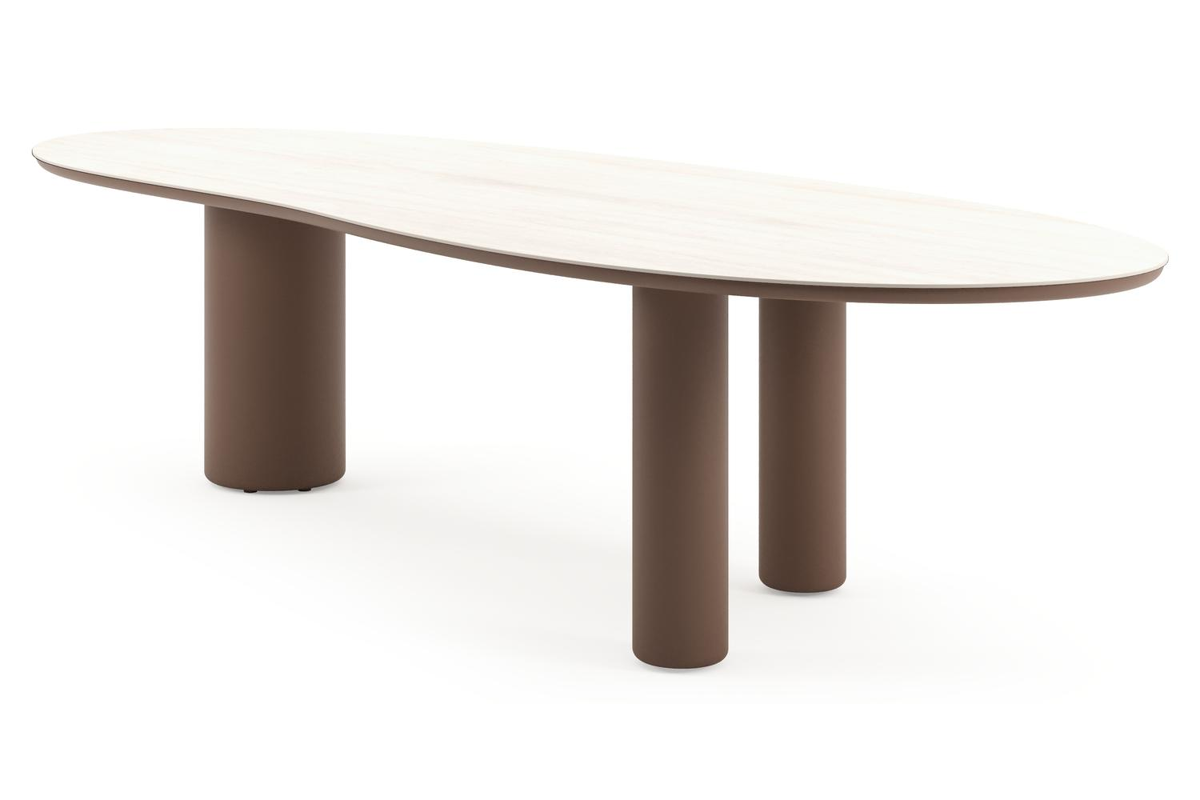 Amico tuintafel organisch in taupe aluminium en volkeramiek Travertino Bianco - L 320 x B 120 x H 73.5 cm | Exterioo