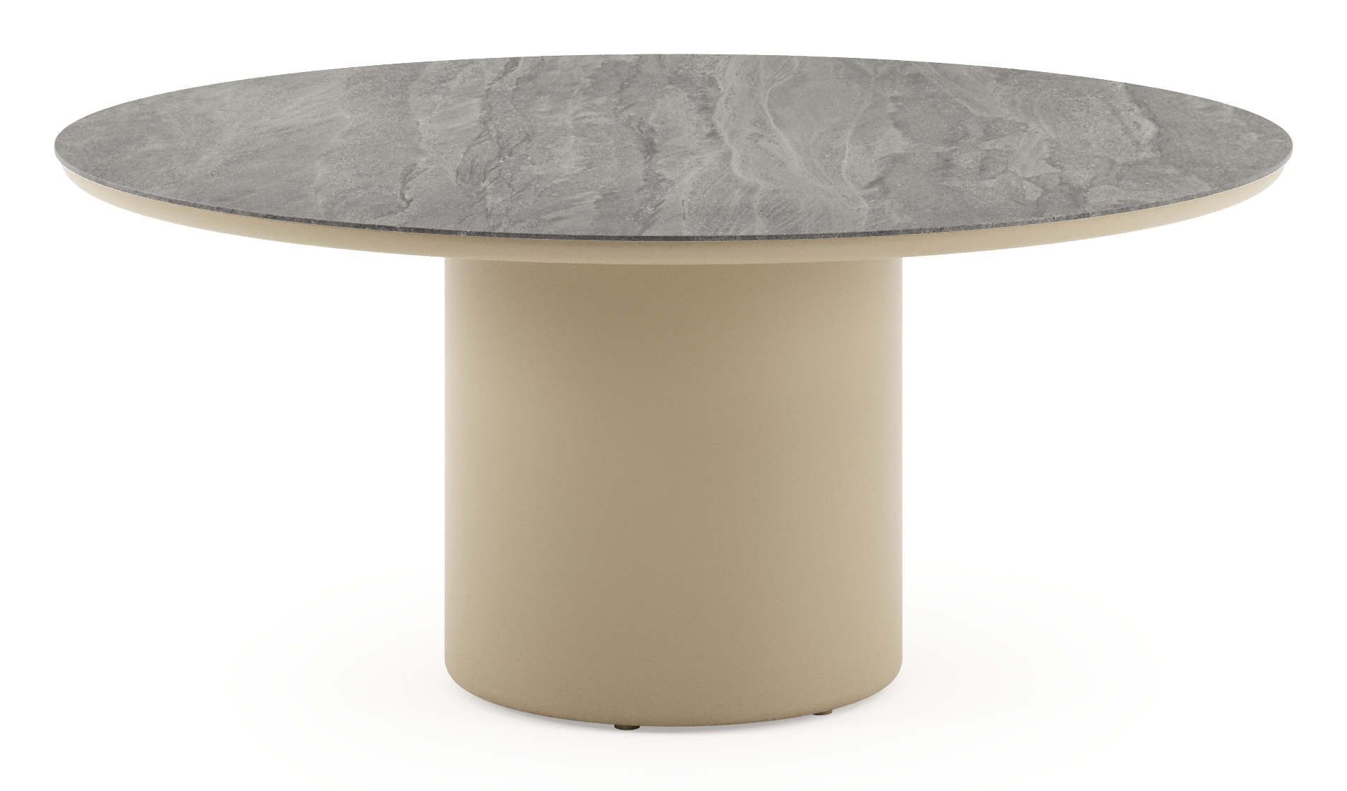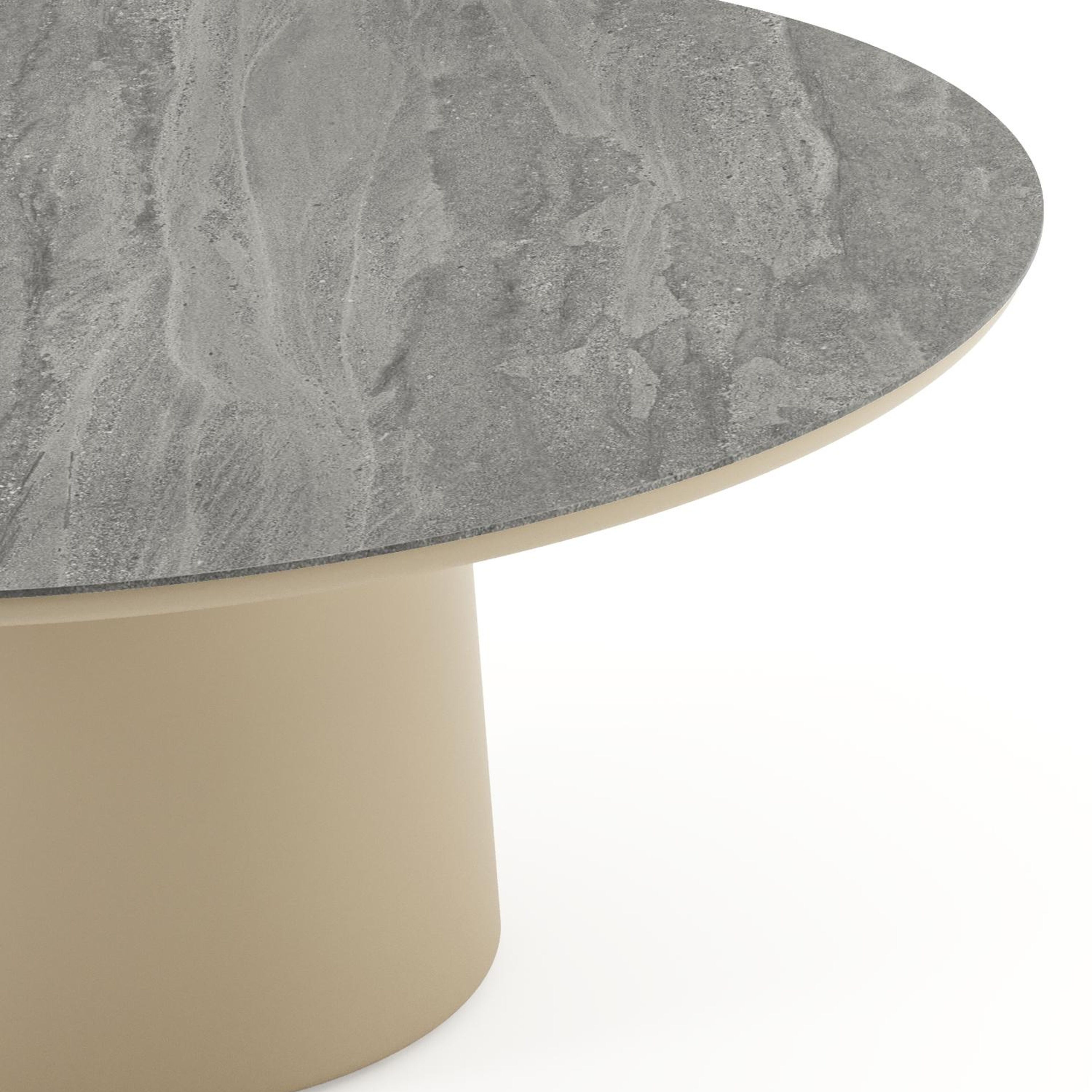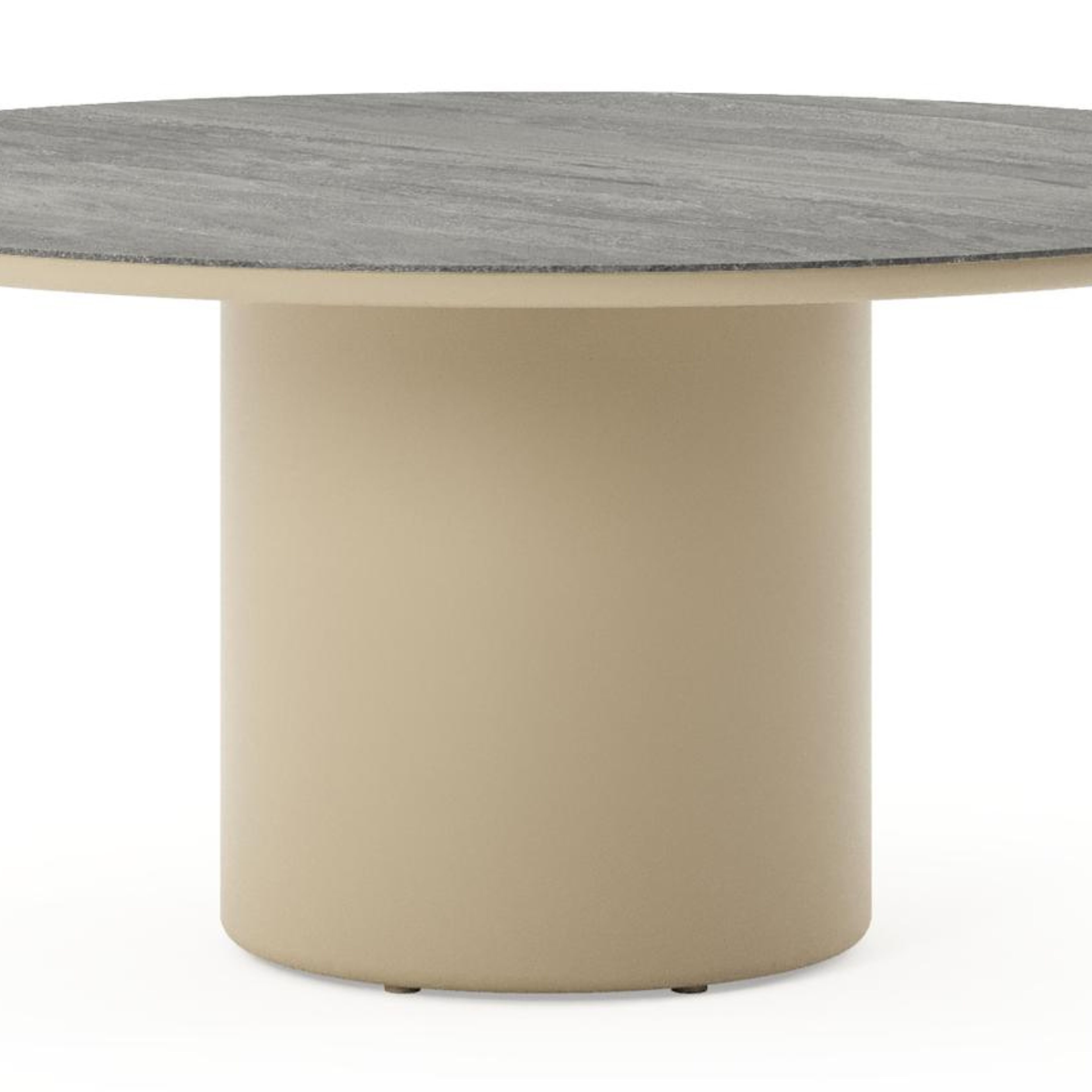 Amico low dining tuintafel rond in beige aluminium en volkeramiek Aspen Grey - Dia. 148 x H 61 cm | Exterioo tuinmeubelen