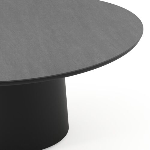 Amico low dining tuintafel rond in zwart aluminium en volkeramiek Basalt Black - Dia. 148 x H 61 cm | Exterioo