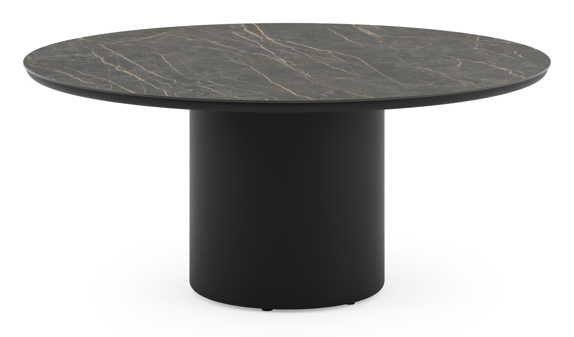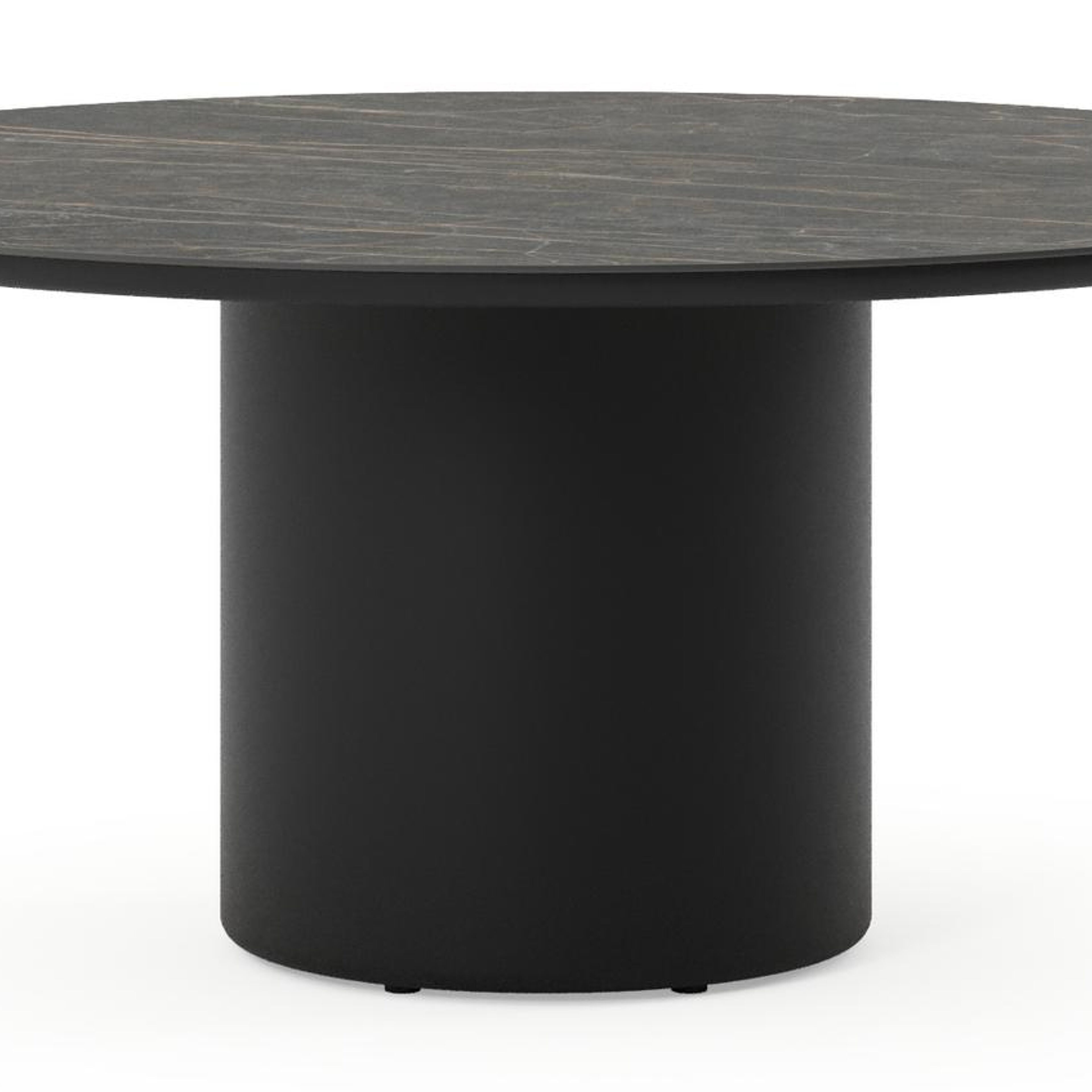 Amico low dining tuintafel rond in zwart aluminium en volkeramiek Black Obsession - Dia. 148 x H 61 cm | Exterioo tuinmeubelen