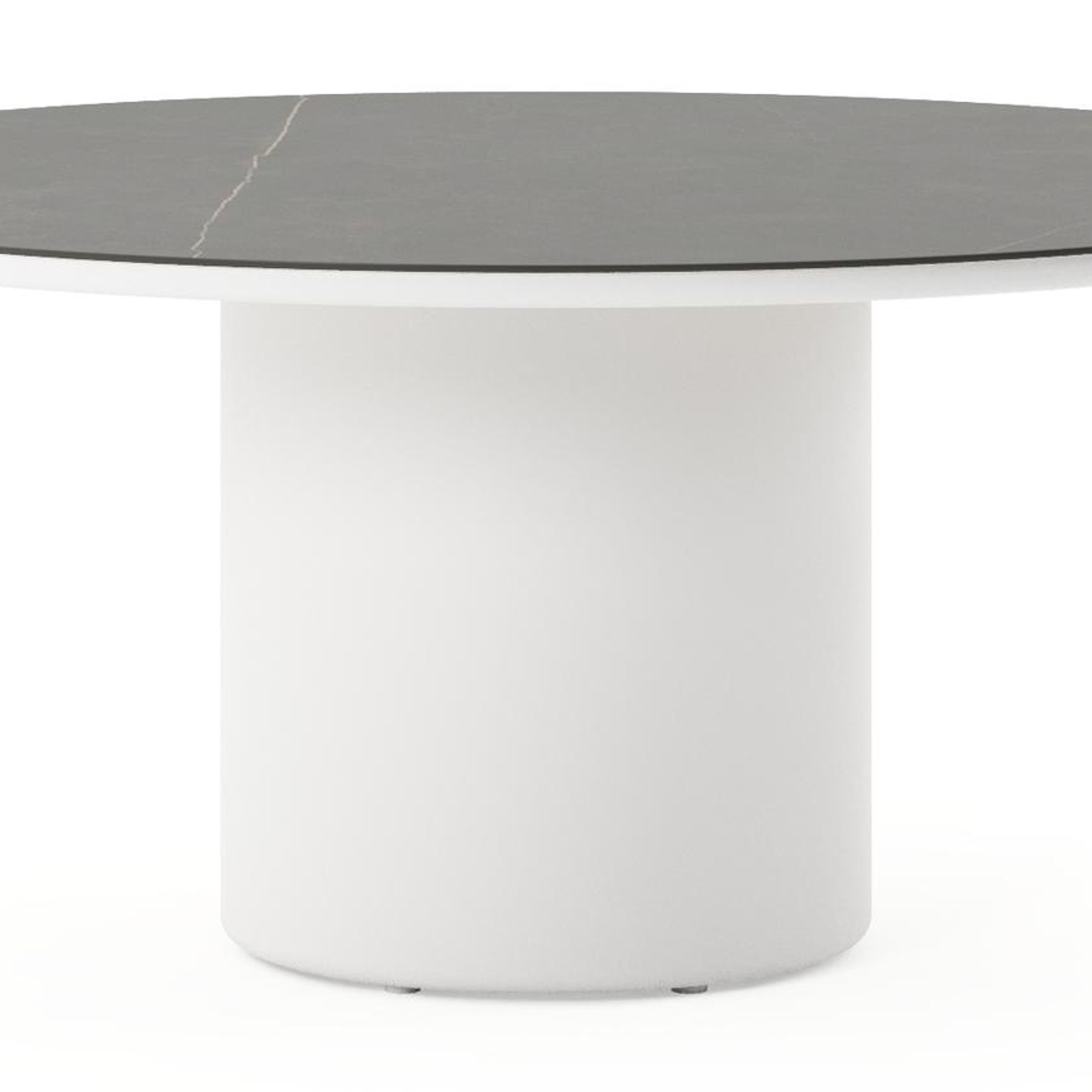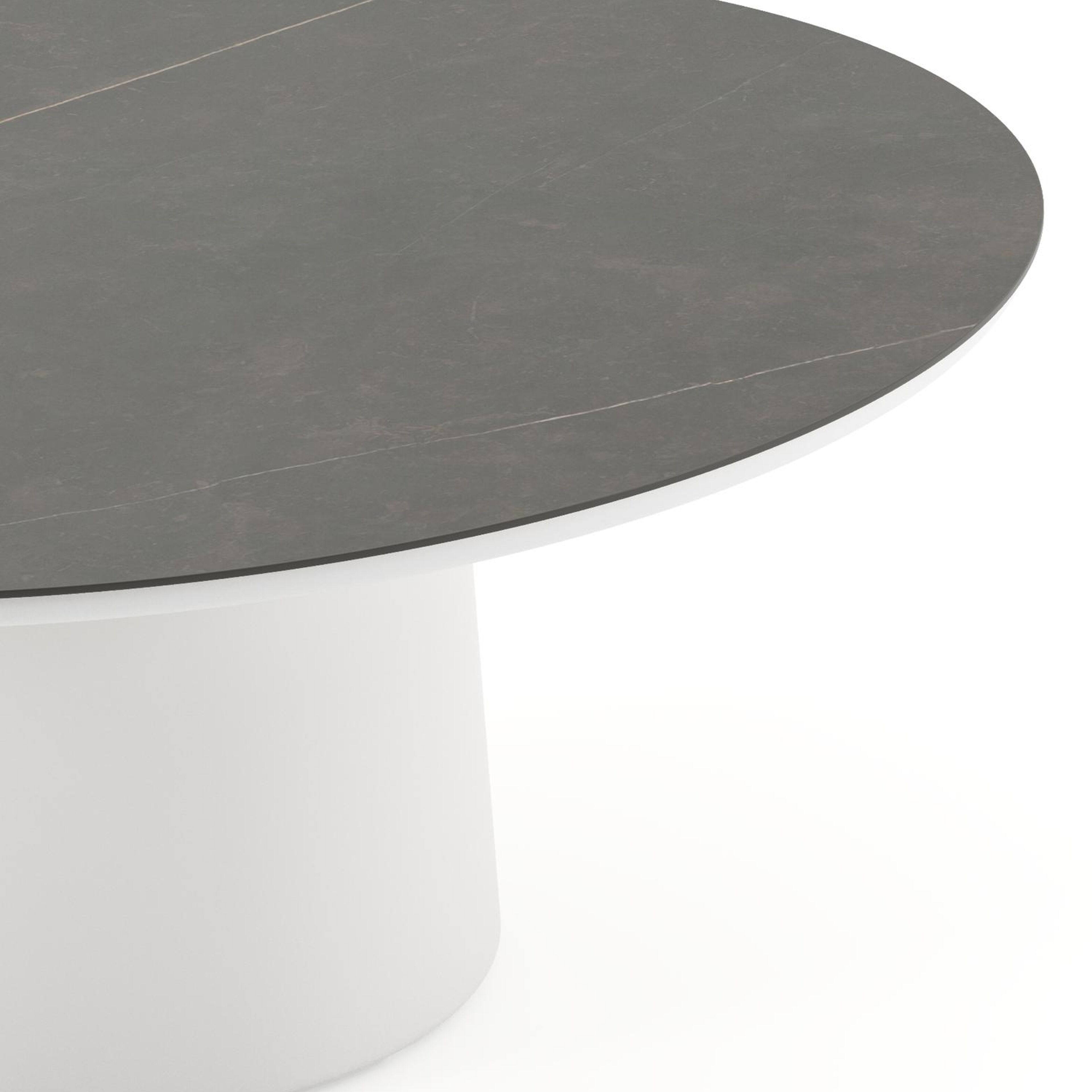 Amico low dining tuintafel rond in wit aluminium en volkeramiek Calatorao - Dia. 148 x H 61 cm | Exterioo tuinmeubelen