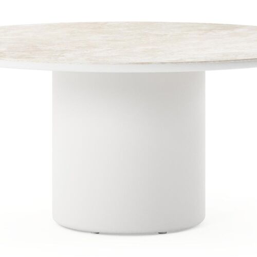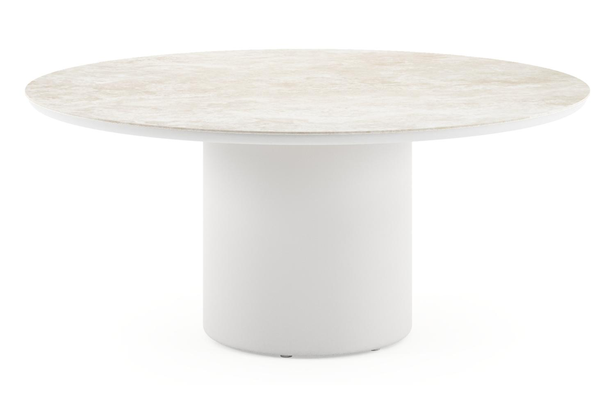 Amico low dining tuintafel rond in wit aluminium en volkeramiek Rapolano - Dia. 148 x H 61 cm | Exterioo