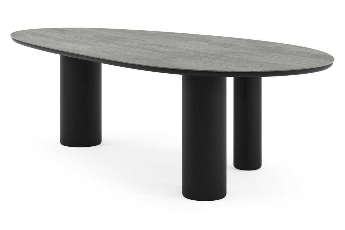 Amico tuintafel mango in zwart aluminium en volkeramiek Aspen Grey - L 260 x B 130 x H 73.5 cm | Exterioo