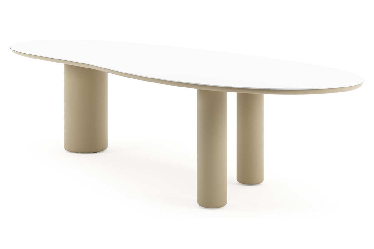 Amico tuintafel organisch in beige aluminium en volkeramiek Arctic White - L 320 x B 120 x H 73.5 cm | Exterioo