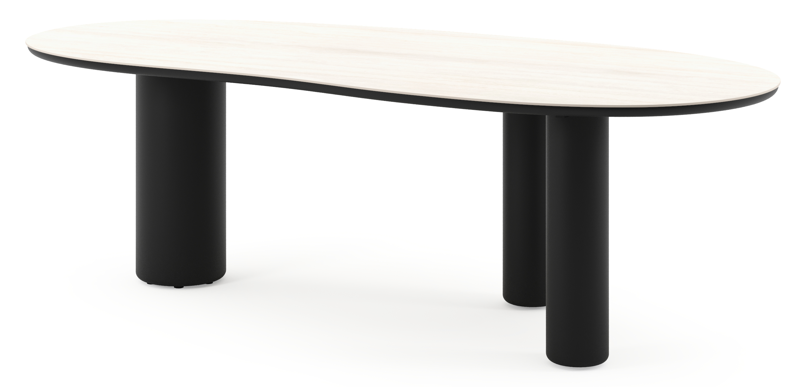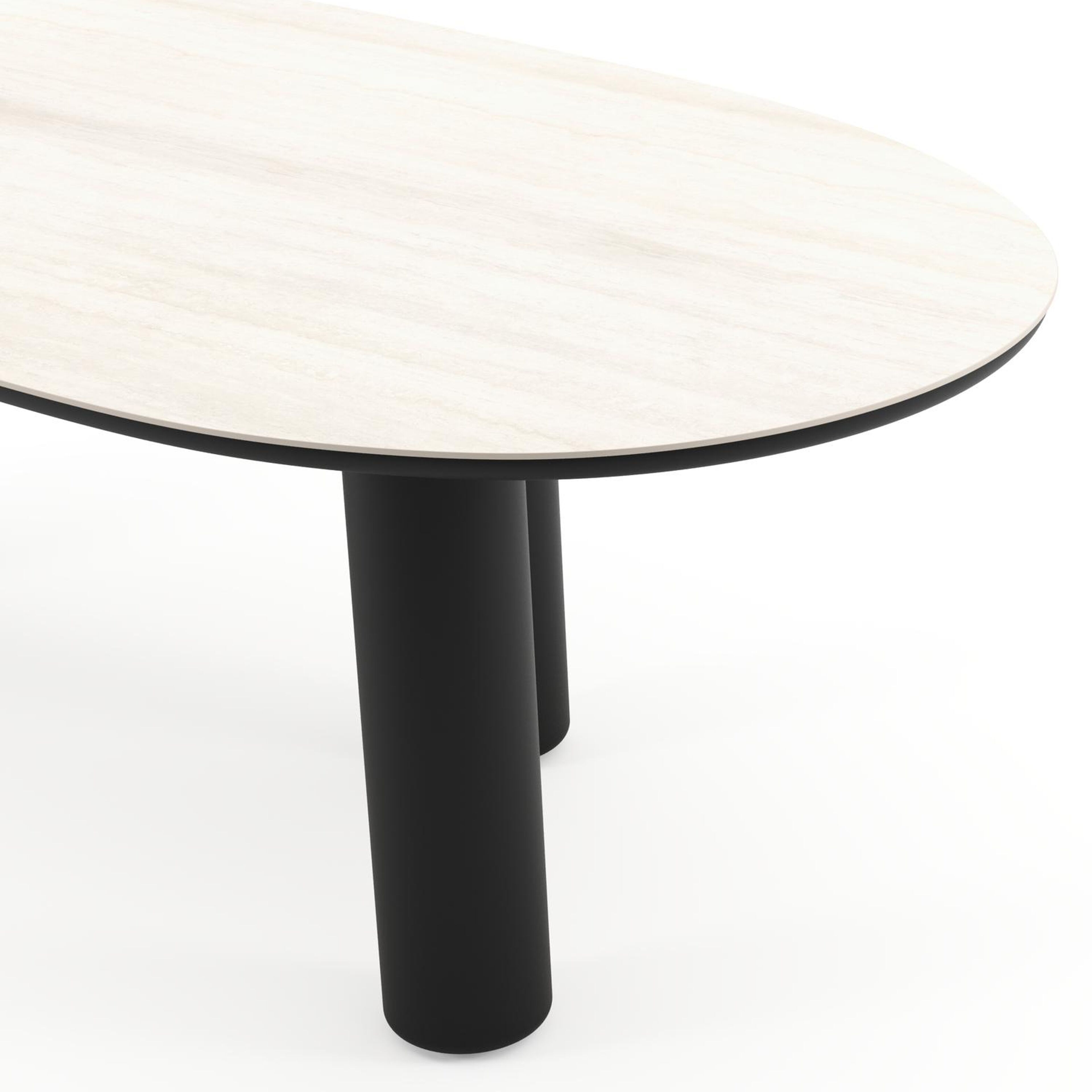 Amico tuintafel organisch in zwart aluminium en volkeramiek Travertino Bianco - L 240 x B 110 x H 73.5 cm | Exterioo tuinmeubelen