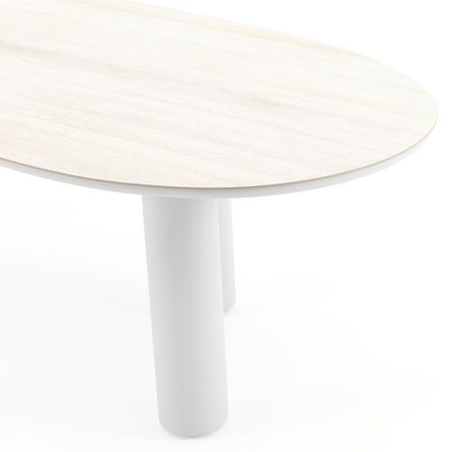 Amico tuintafel organisch in wit aluminium en volkeramiek Travertino Bianco - L 240 x B 110 x H 73.5 cm | Exterioo