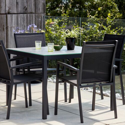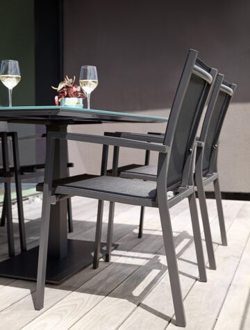 Ancona stapelbare tuinstoel zwart - aluminium en textilene | Exterioo