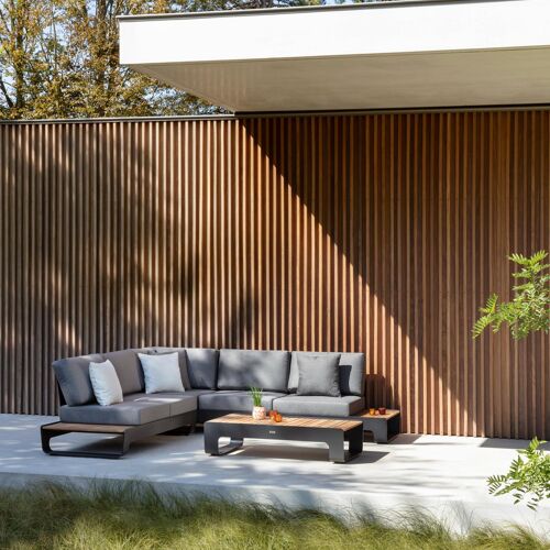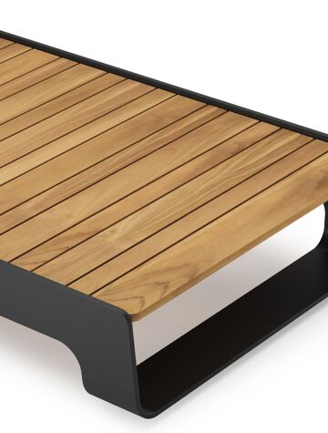 De Atessa loungetafel is gemaakt van roestvrij aluminium en afgewerkt met teak. De tafel is uniek dankzij zijn vloeiende U-poot en het lijnenspel in het tafelblad. Deze loungetafel is de perfecte aanvulling voor jouw lounge.