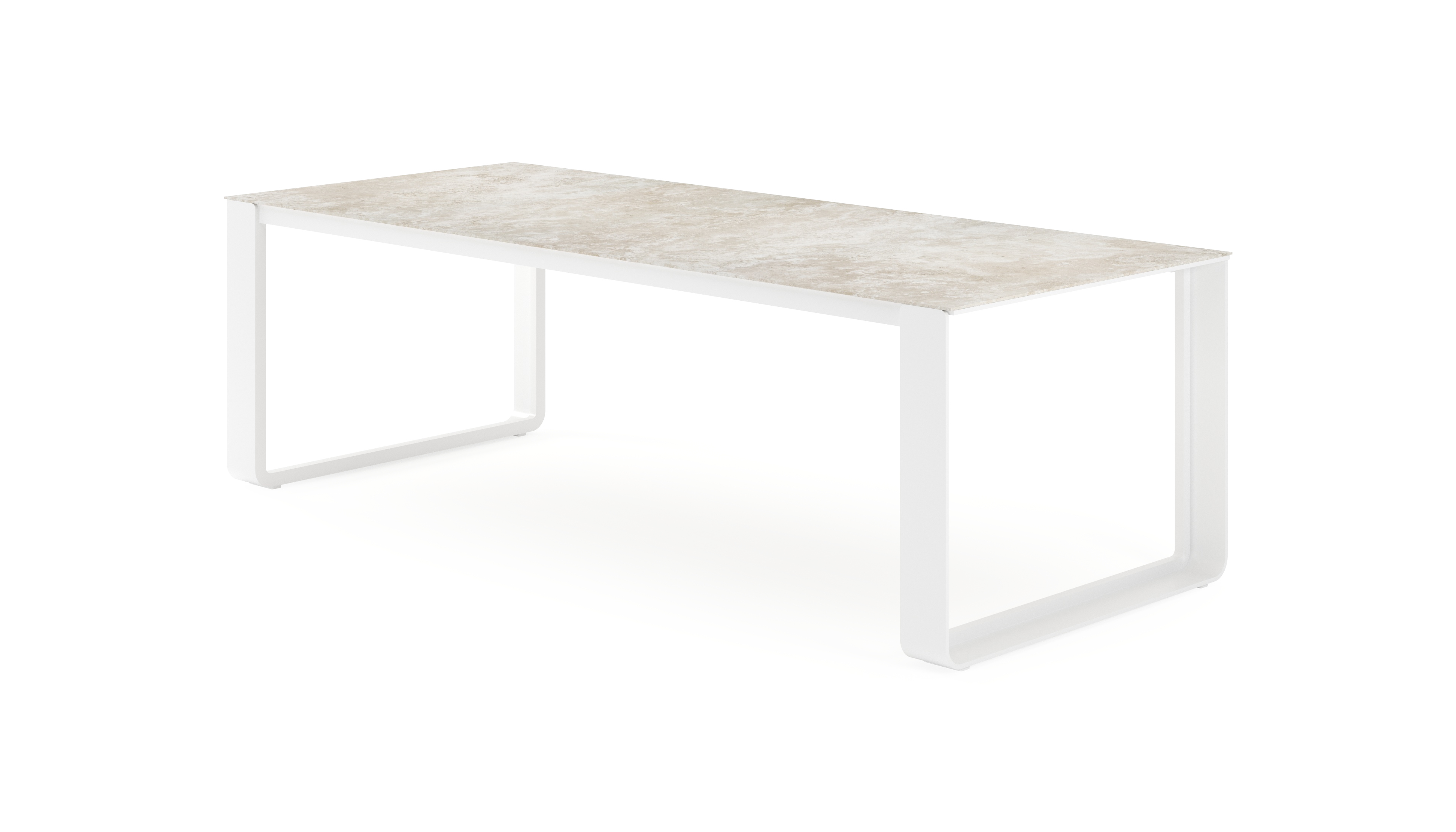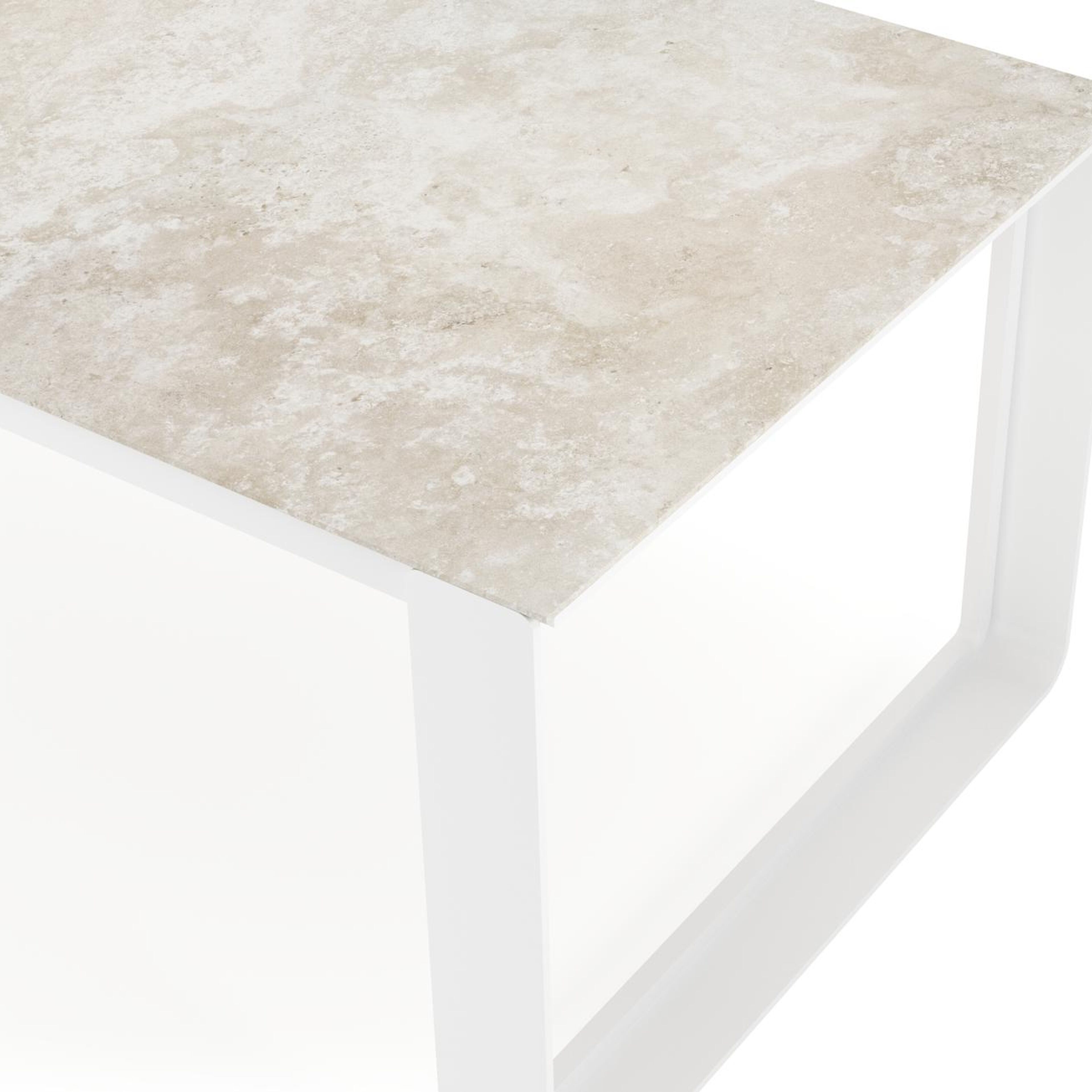 Het frame van de tafel is gemaakt uit roestvrij aluminium, een sterk, maar toch licht materiaal dat makkelijk verplaatsbaar is. Het oppervlak is glad afgewerkt waardoor het geen vuil aantrekt en onderhoudsvriendelijk is. De poedercoating zorgt voor de UV- en weerbestendigheid van je meubel.