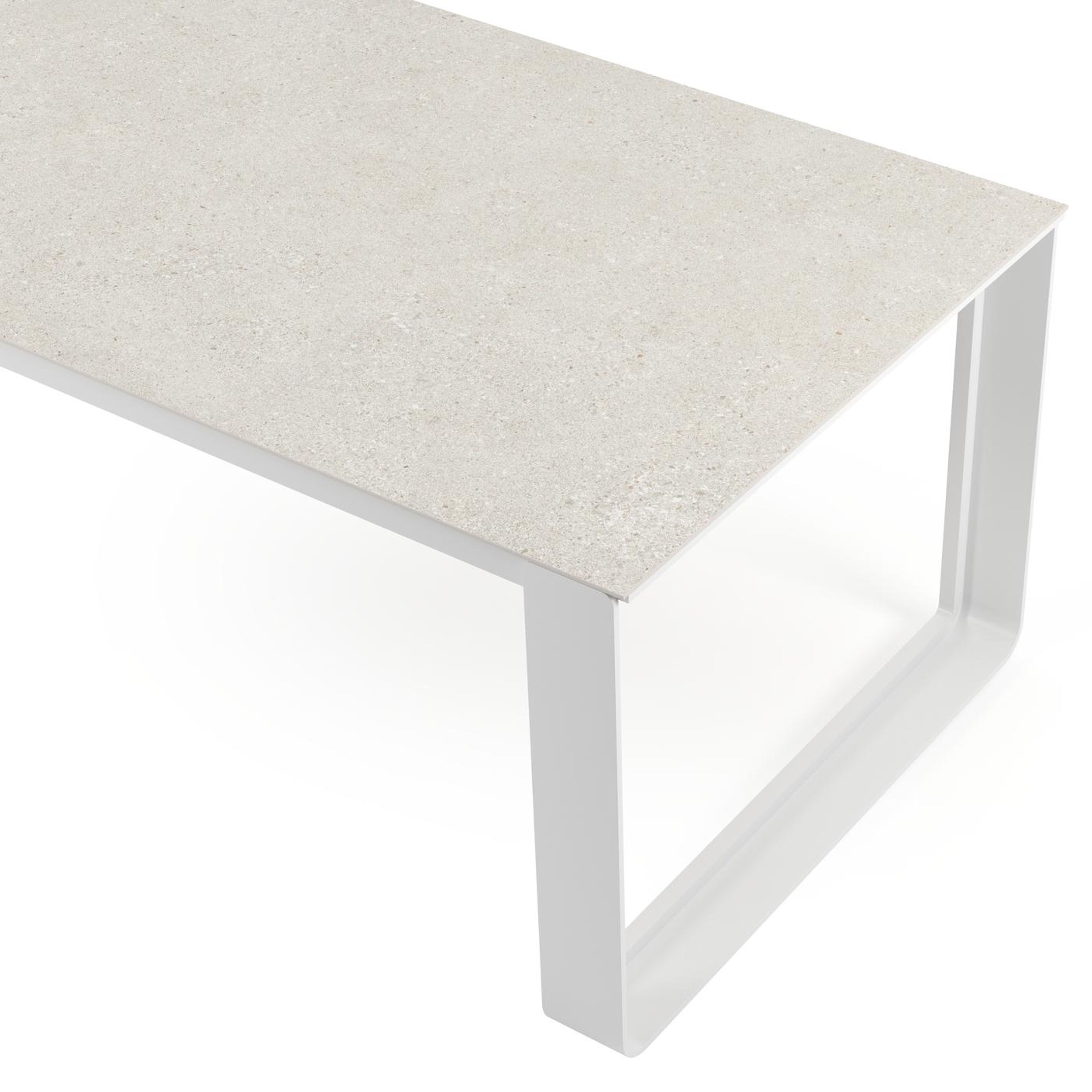 Het frame van de tafel is gemaakt uit roestvrij aluminium, een sterk, maar toch licht materiaal dat makkelijk verplaatsbaar is. Het oppervlak is glad afgewerkt waardoor het geen vuil aantrekt en onderhoudsvriendelijk is. De poedercoating zorgt voor de UV- en weerbestendigheid van je meubel.