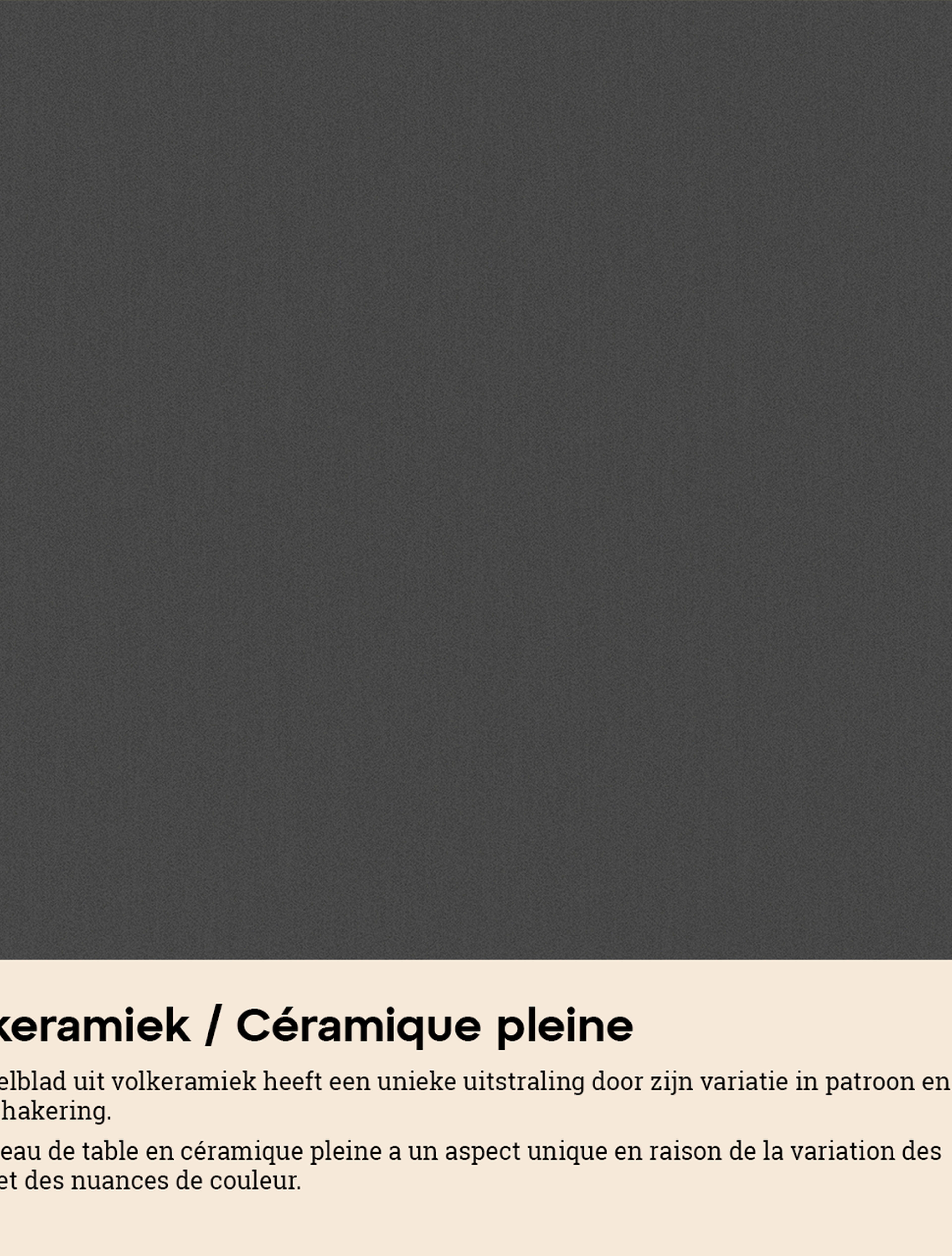 Een volkeramisch tafelblad is een keramische plaat die op extreem hoge temperatuur gebakken wordt. Het materiaal is uiterst stevig en kan tegen een stootje. Een volkeramisch tafelblad is vorst-, hitte- en krasbestendig en eenvoudig schoon te maken.