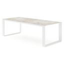 Het frame van de tafel is gemaakt uit roestvrij aluminium, een sterk, maar toch licht materiaal dat makkelijk verplaatsbaar is. Het oppervlak is glad afgewerkt waardoor het geen vuil aantrekt en onderhoudsvriendelijk is. De poedercoating zorgt voor de UV- en weerbestendigheid van je meubel.