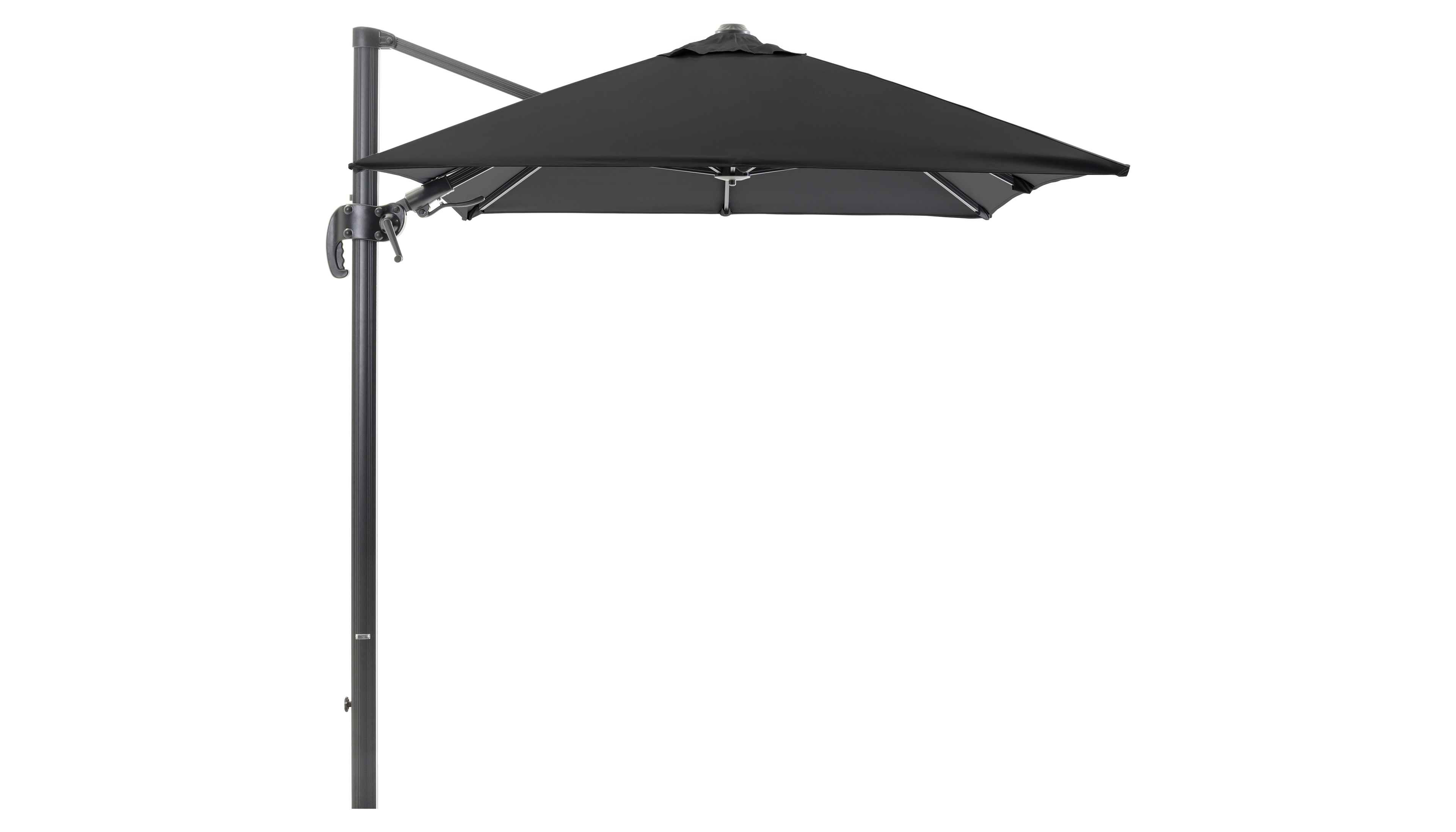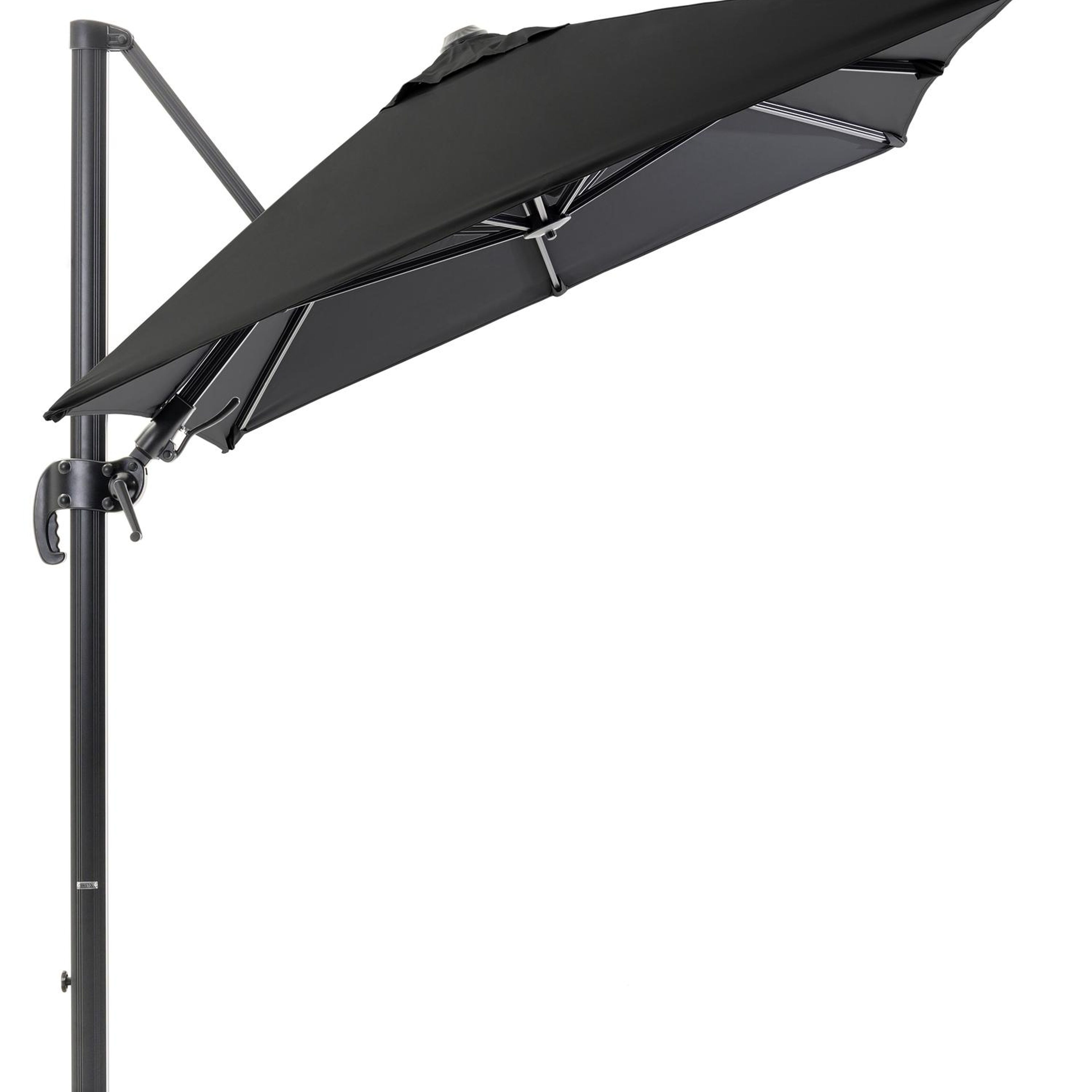 De mast van de parasol is gemaakt uit roestvrij aluminium, een stevig en licht materiaal.