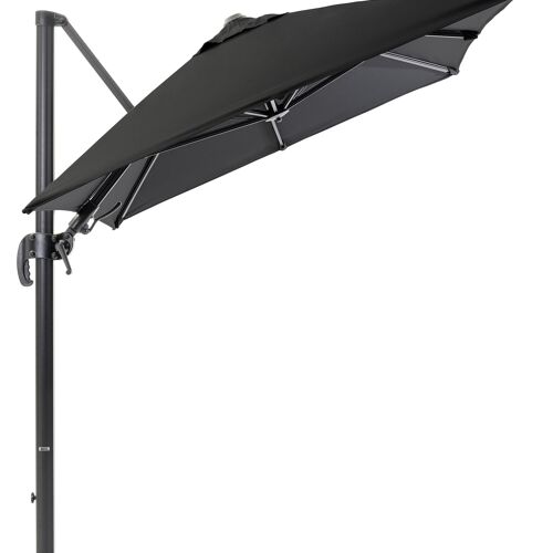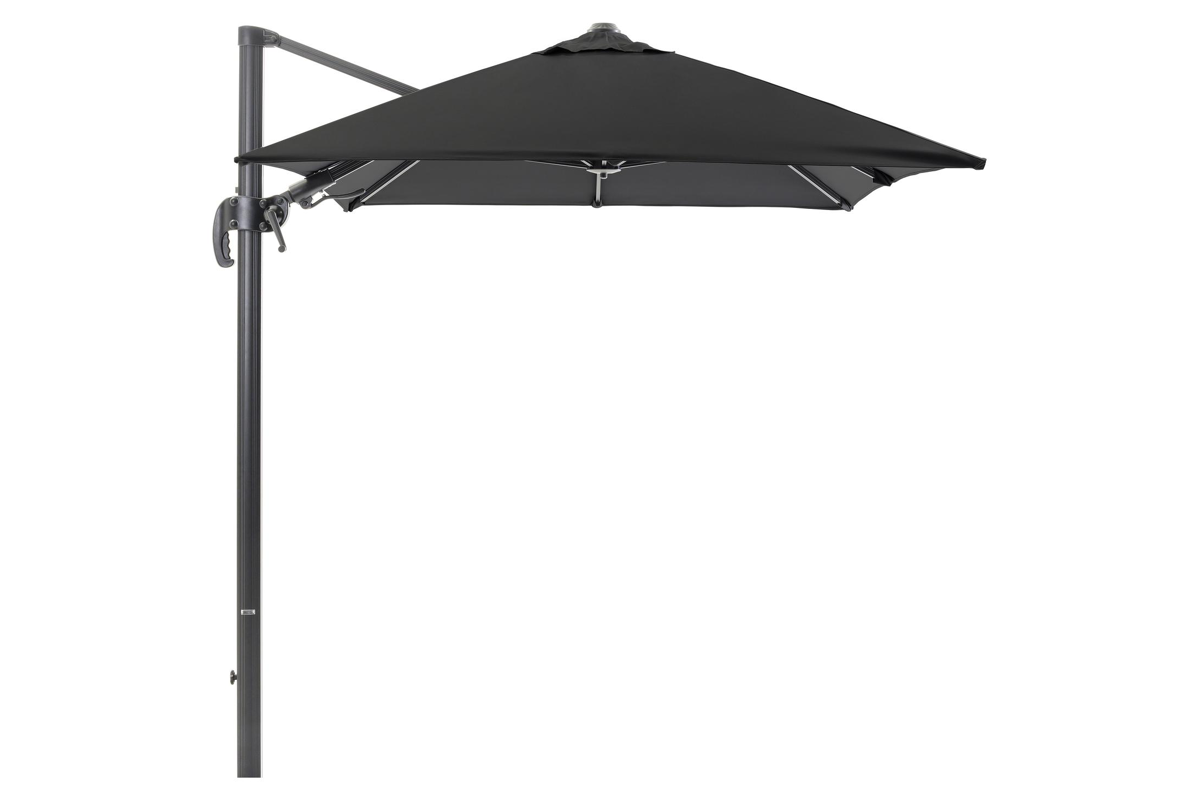 Avola zweefparasol met tiltfunctie in zwart aluminium met zwart weather+ softtouch parasoldoek - L1 200 x L2 300 cm (zonder voet) | Exterioo