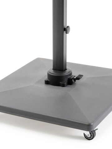 De Avola zweefparasol is een gebruiksvriendelijke zweefparasol. De kleur van de mast is zwart, deze bestaat uit aluminium. De parasoldoek is grijs en gemaakt van polyester. De parasolvoet op wieltjes is inbegrepen en weegt 90 kg. De parasol is in hoogte verstelbaar en kan 360° graden rond zijn eigen as draaien. De parasol LED-verlichting is apart verkrijgbaar. De afmetingen zijn: L1: 200 x L2: 300 cm.