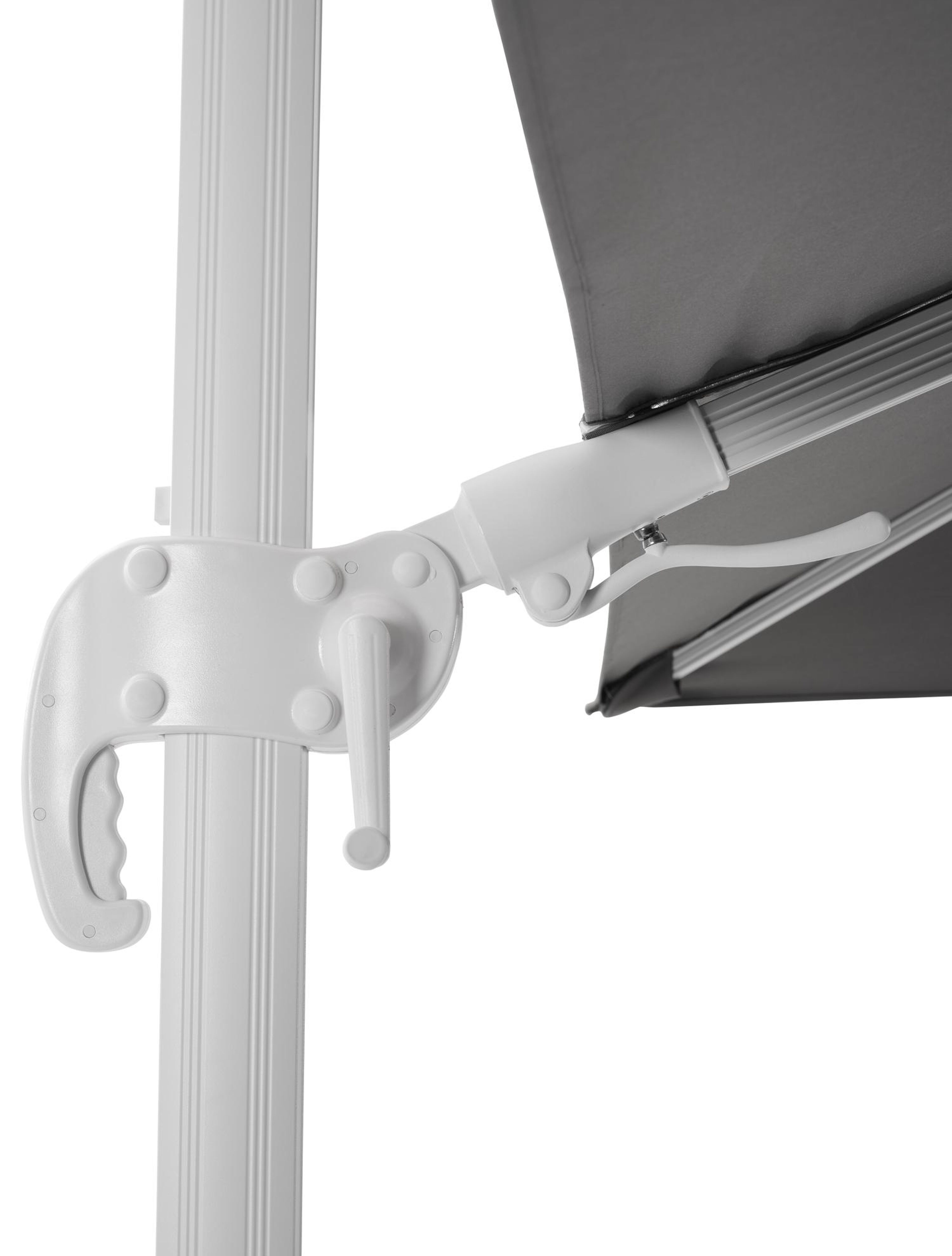 De Avola zweefparasol is dé musthave onder de zweefparasols met alle nodige functies en een kwalitatieve All Weather Sunbrella parasoldoek, ideaal om schaduw te brengen op warme zonnige dagen.De mast van de parasol is gemaakt uit roestvrij aluminium, een stevig en licht materiaal. De parasoldoek bestaat uit All Weather Sunbrella, heeft verschillende eigenschappen die de ideale match vormen voor een kwalitatieve parasol. De parasol beschikt over een tilt functie, zo kan je de parasol ook kantelen. Daarnaast heeft de parasol ook een verstelbare functie, zo kan je de parasol in hoogte aanpassen.