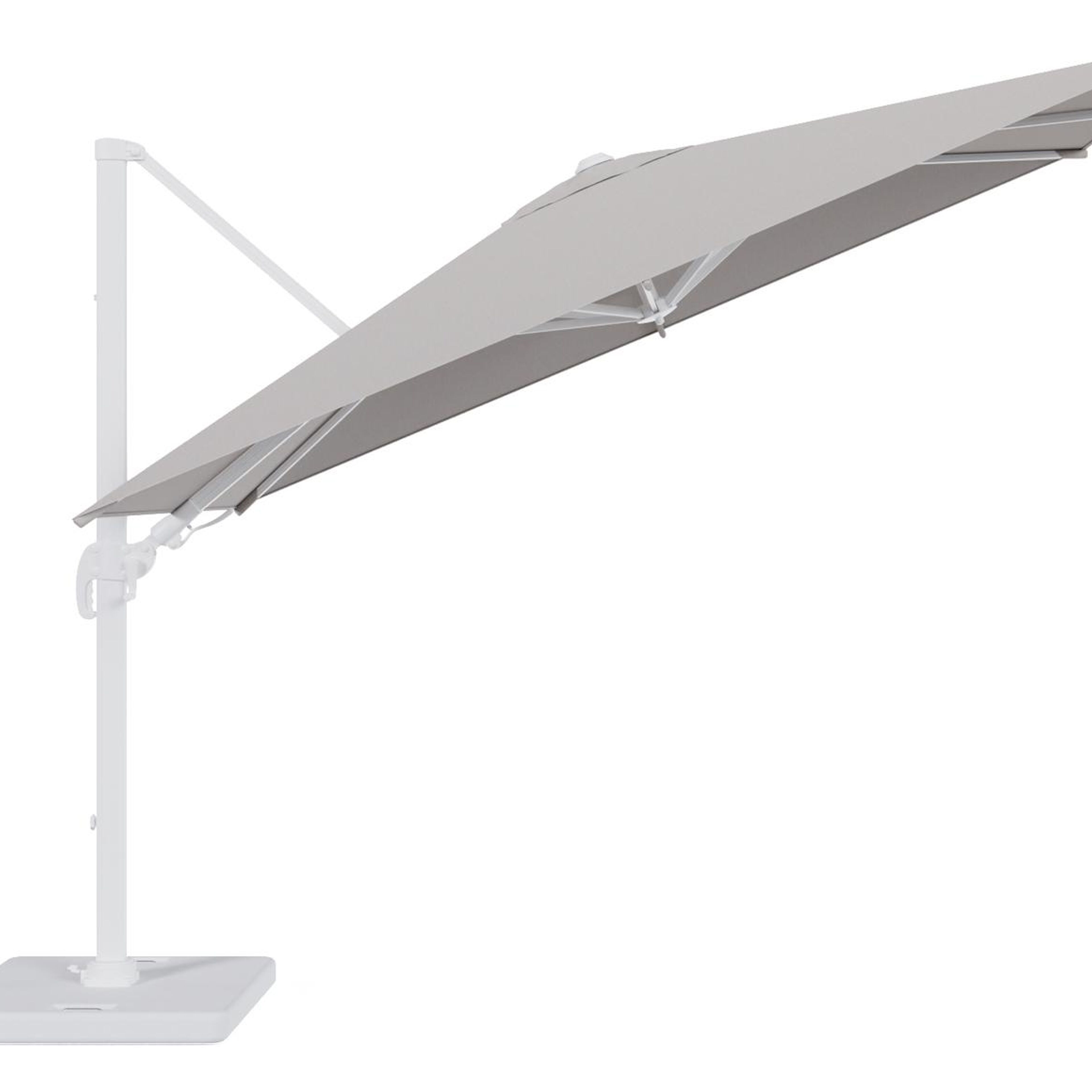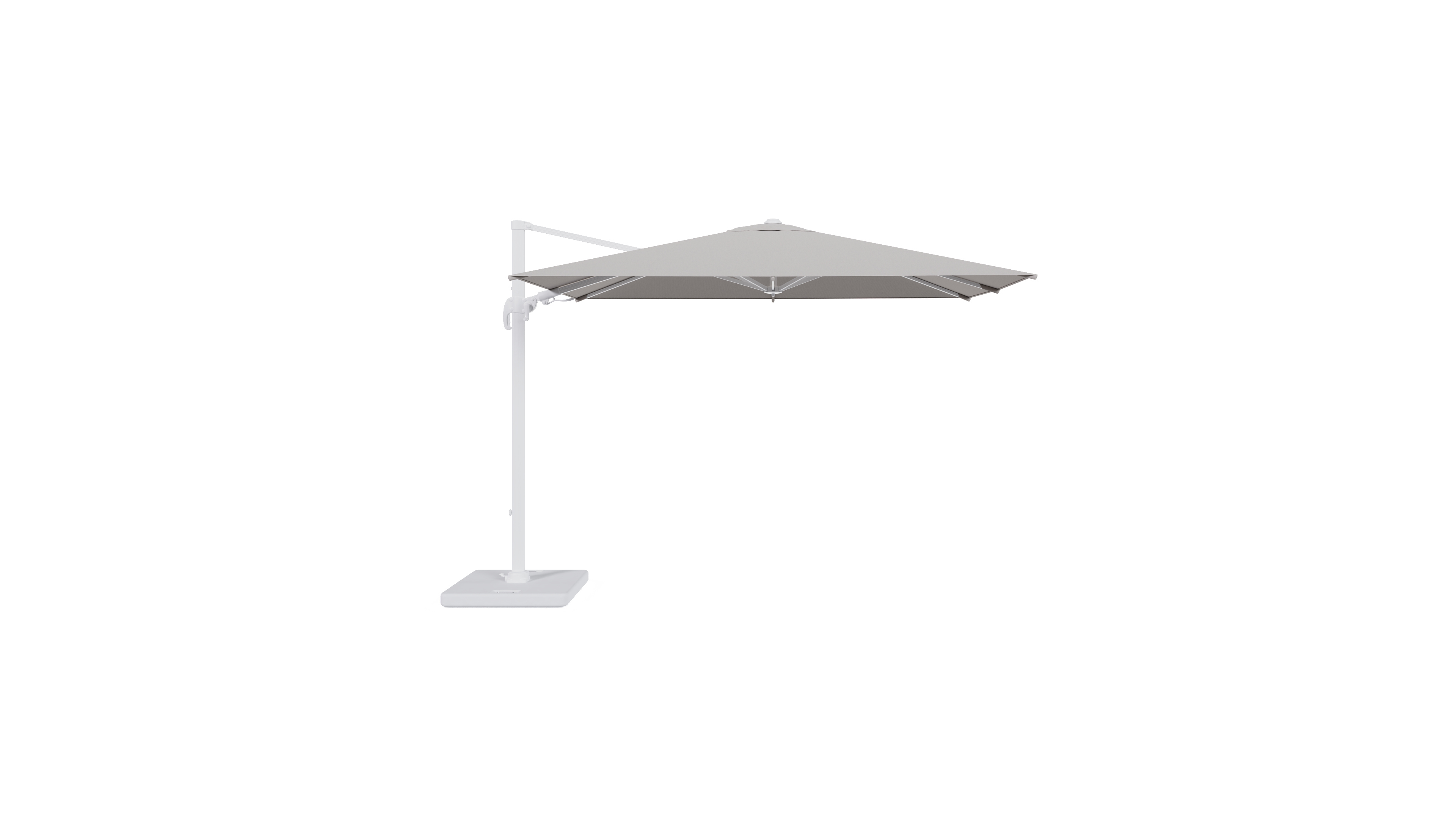 Avola zweefparasol met tiltfunctie in wit aluminium en Natte Graumel Chalk Sunbrella® Premium parasoldoek - L1 200 x L2 300 cm met parasolvoet Pedito 120 kg | Exterioo tuinmeubelen
