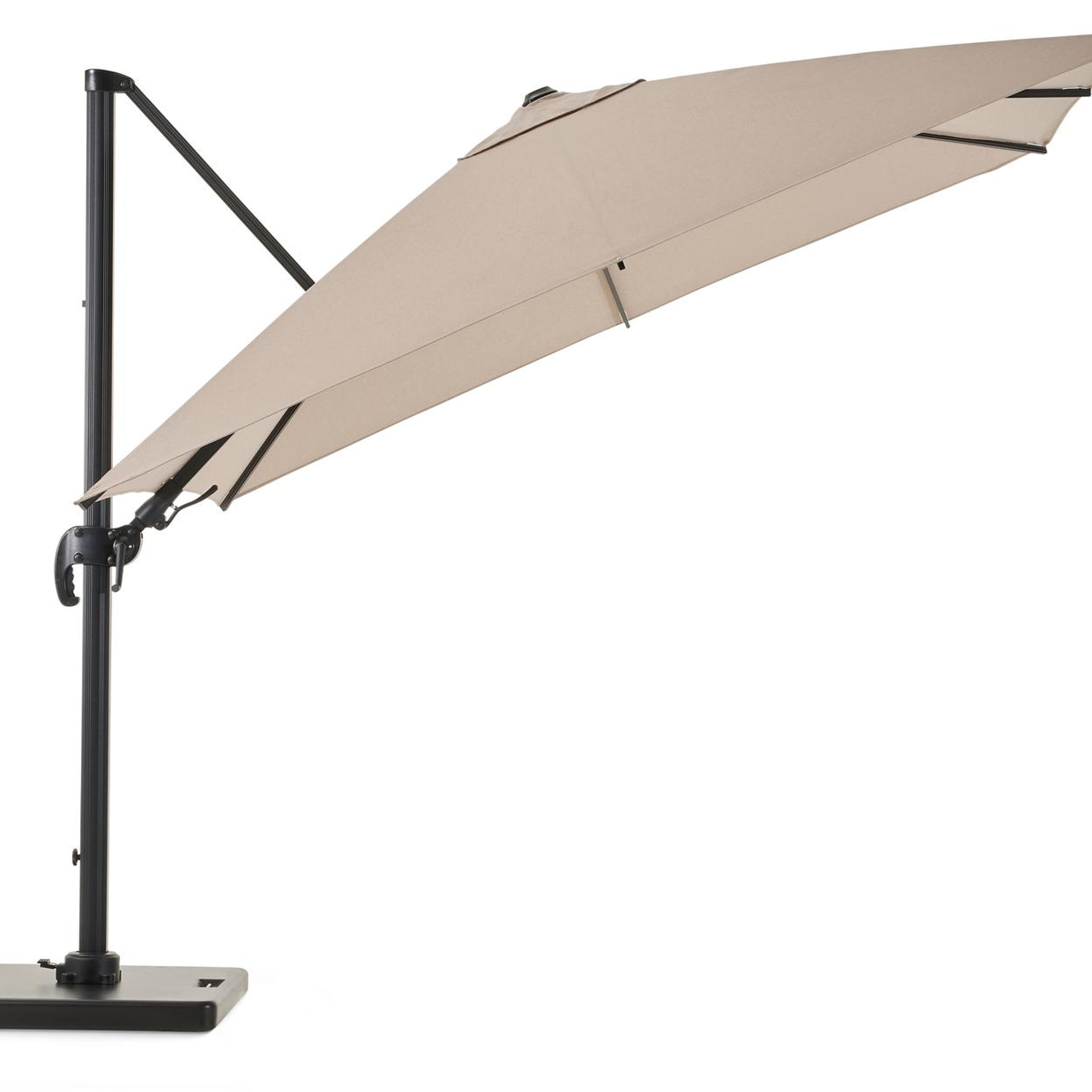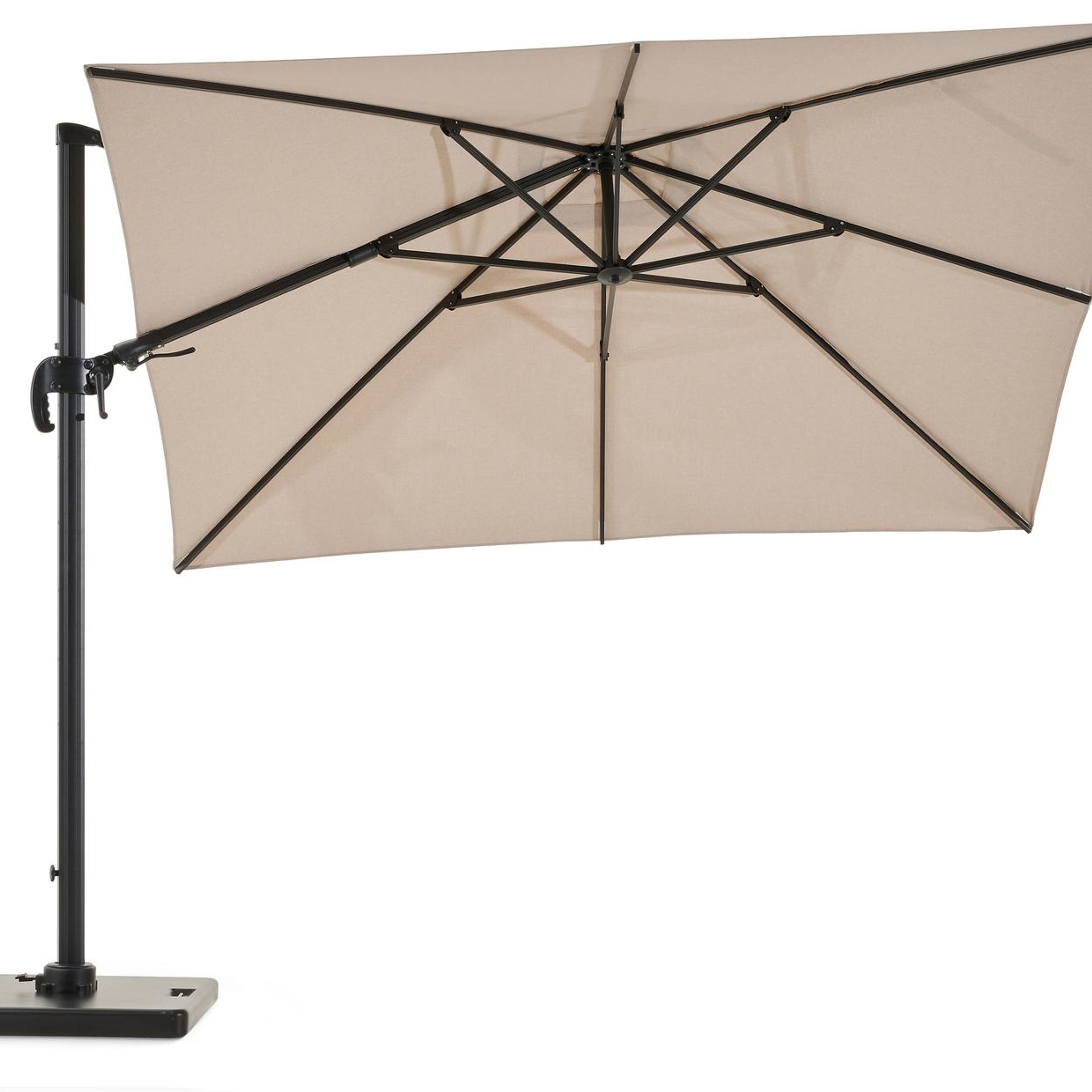 Avola zweefparasol met tiltfunctie in zwart aluminium en natural Weather+ Softtouch parasoldoek - L1 300 x L2 300 cm met Pedito parasolvoet 120 kg | Exterioo tuinmeubelen