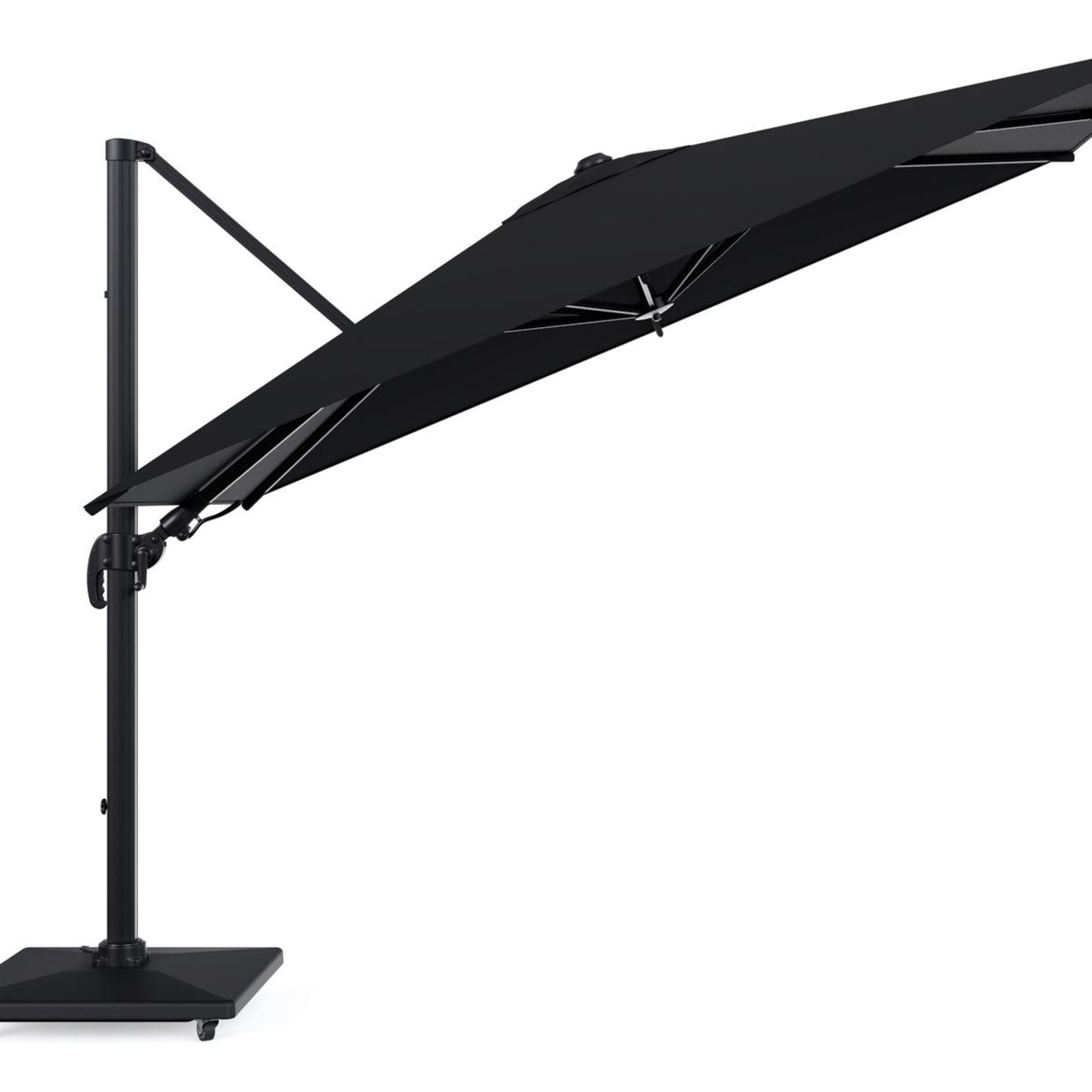 Indien je de Avola zweefparasol plaatst in een open omgeving met veel wind, raden we aan om een Pedito parasolvoet van 120 kg te gebruiken.
