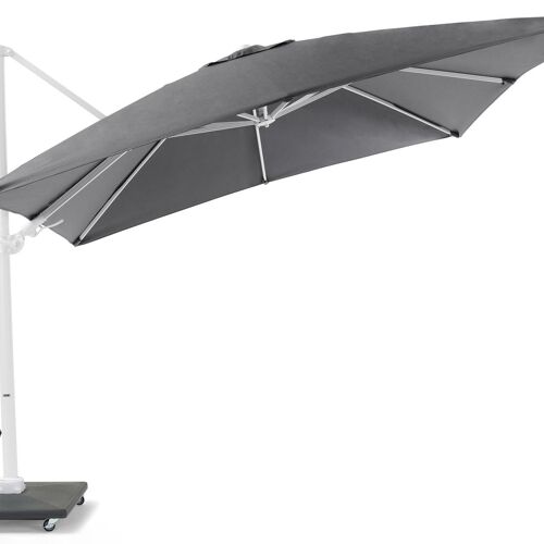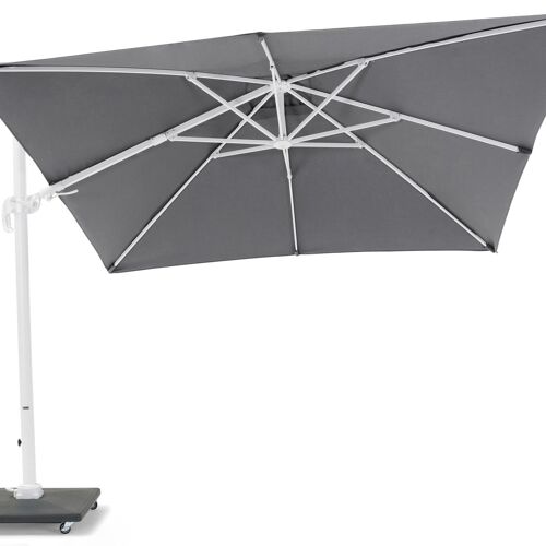 De parasoldoek bestaat uit Weather+Softtouch, een zachte en vuilafstotende stof. De parasol beschikt over een tilt functie, zo kan je de parasol ook kantelen. Daarnaast heeft de parasol ook een verstelbare functie, zo kan je de parasol in hoogte aanpassen. De parasolvoet uit beton is inclusief met wielen.