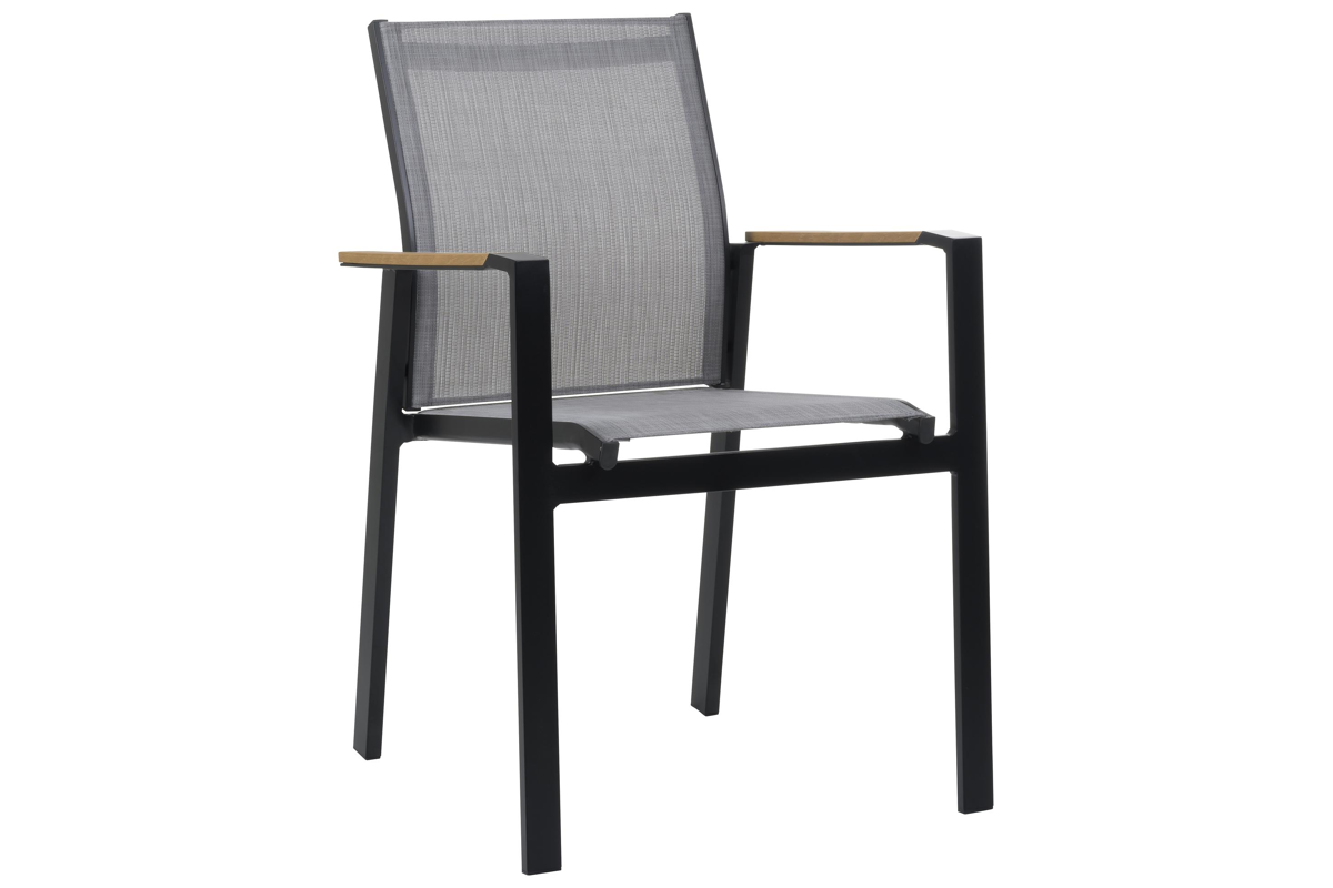 De zitting en rug zijn gemaakt uit stevige textilene, een stijlvol en onderhoudsvriendelijk materiaal. De stoel is stapelbaar en dus makkelijk op te bergen.