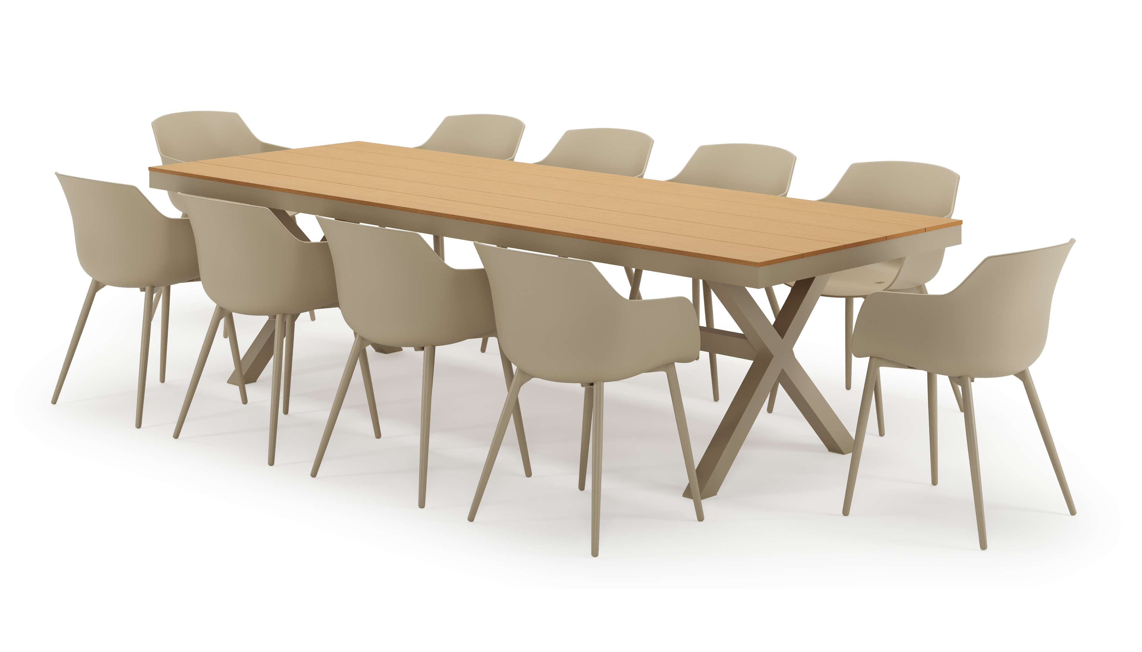 De Bahia tuintafel herken je aan de stevige look en kruispoot. Het frame waarop het tafelblad ligt, is robuust. In het midden van de tafel loopt een balk als extra ondersteuning van het frame.