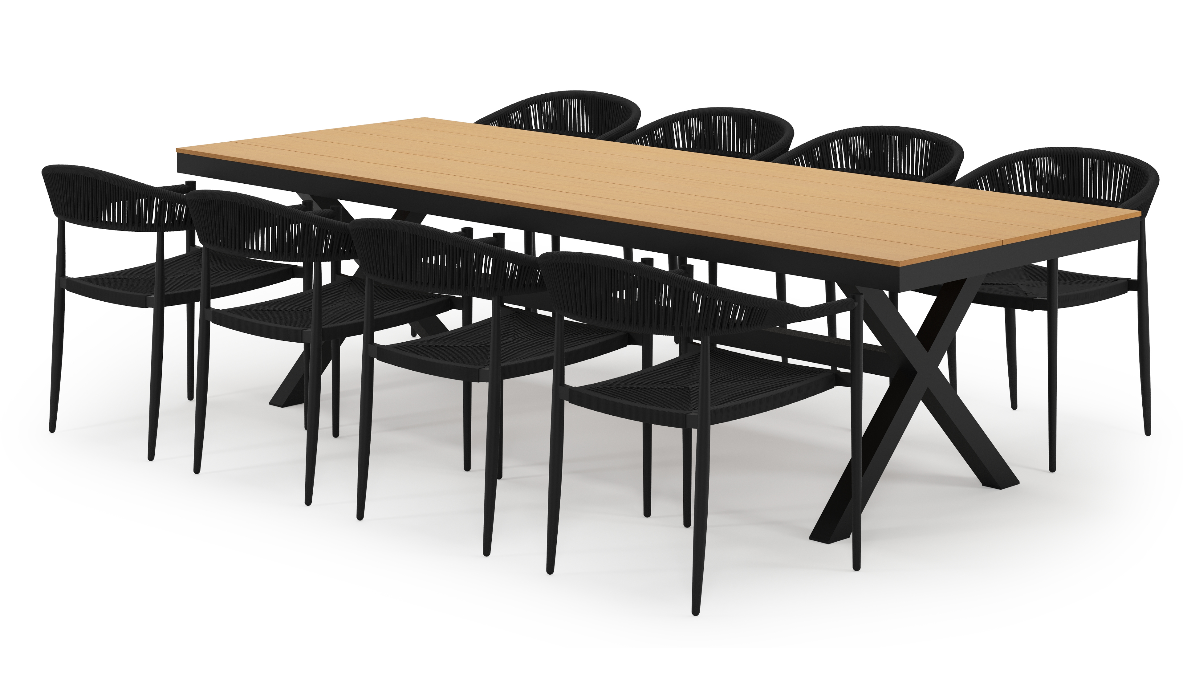 De Bahia tuintafel herken je aan de stevige look en kruispoot. Het frame waarop het tafelblad ligt, is robuust. In het midden van de tafel loopt een balk als extra ondersteuning van het frame.