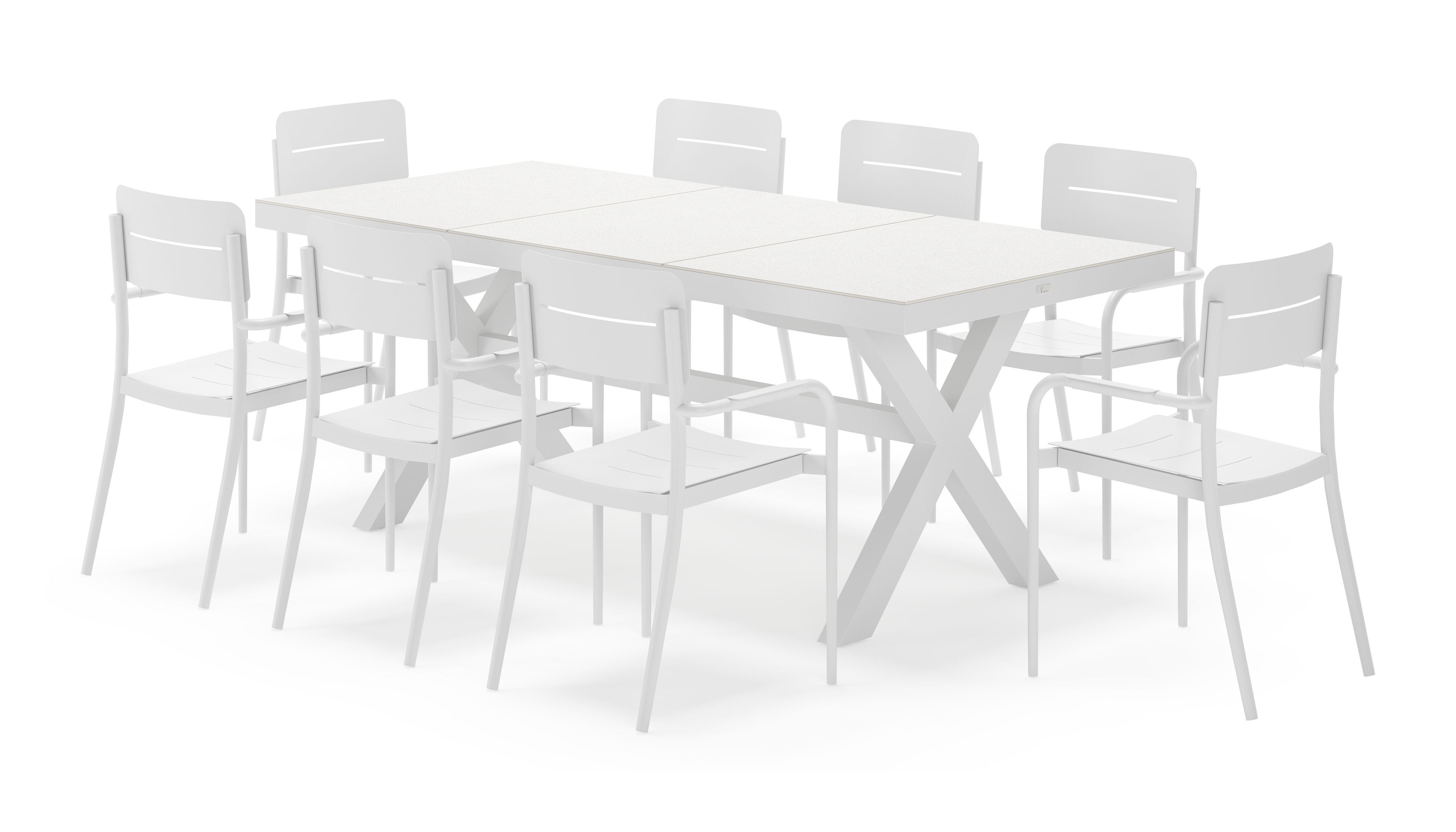 Bahia tuinset rechthoekig in wit aluminium en sintered stone grijs met 8 Salto tuinstoelen | Exterioo tuinmeubelen