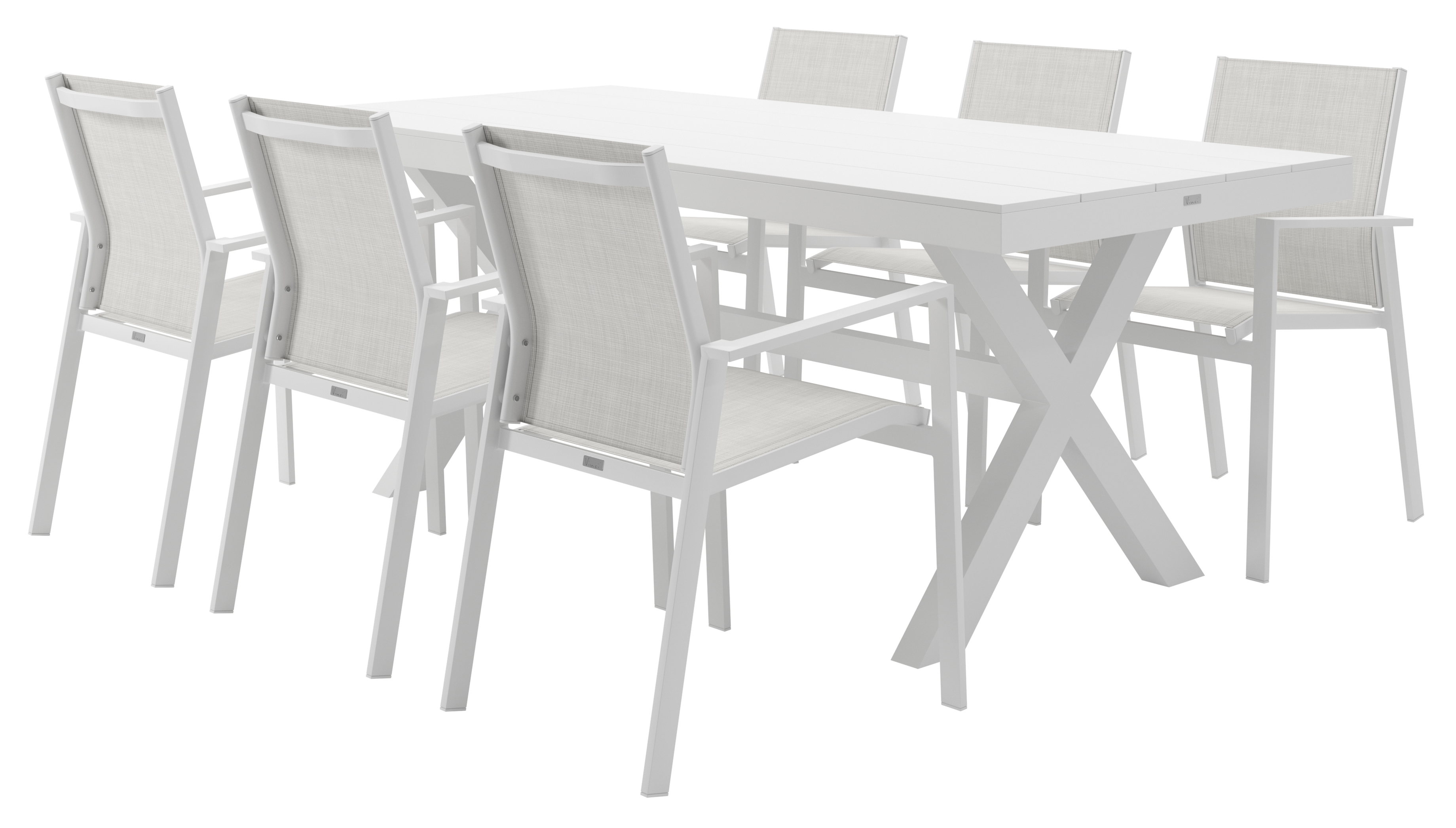 De Bahia stoel heeft een strak en eenvoudig design met uitstekend zitcomfort. Het frame is gemaakt uit roestvrij aluminium. De zitting en rug zijn gemaakt uit stevige textilene, een stijlvol en onderhoudsvriendelijk materiaal. De stoel is stapelbaar en dus makkelijk op te bergen.