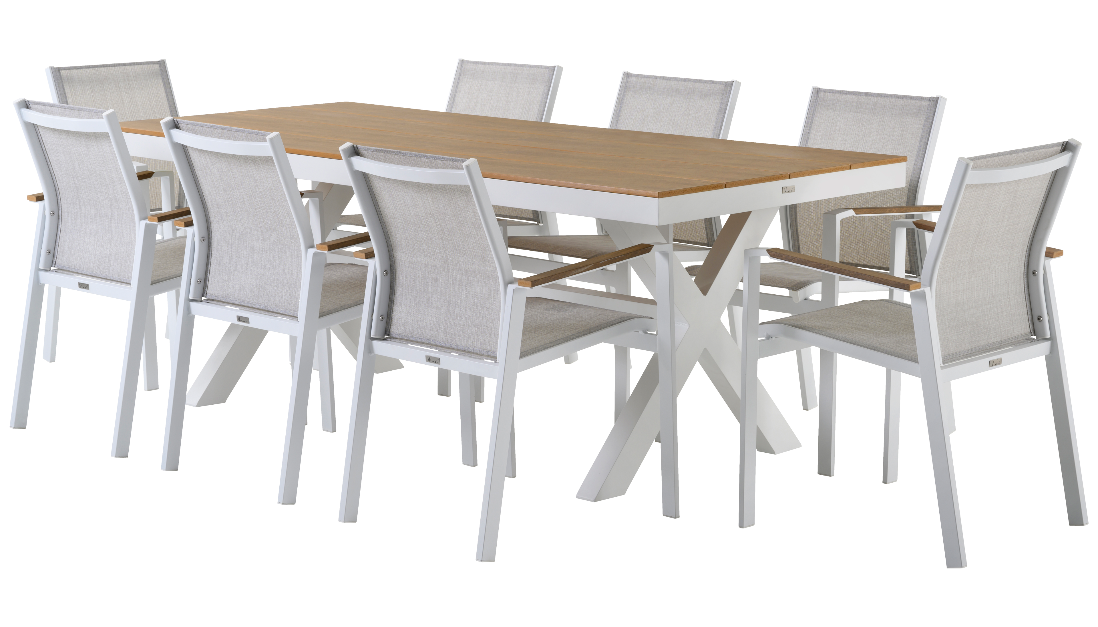 Bahia tuinset herken je aan de stevige look en kruispoot. Het frame waarop het tafelblad ligt, is robuust. In het midden van de tafel loopt een balk als extra ondersteuning van het frame.
