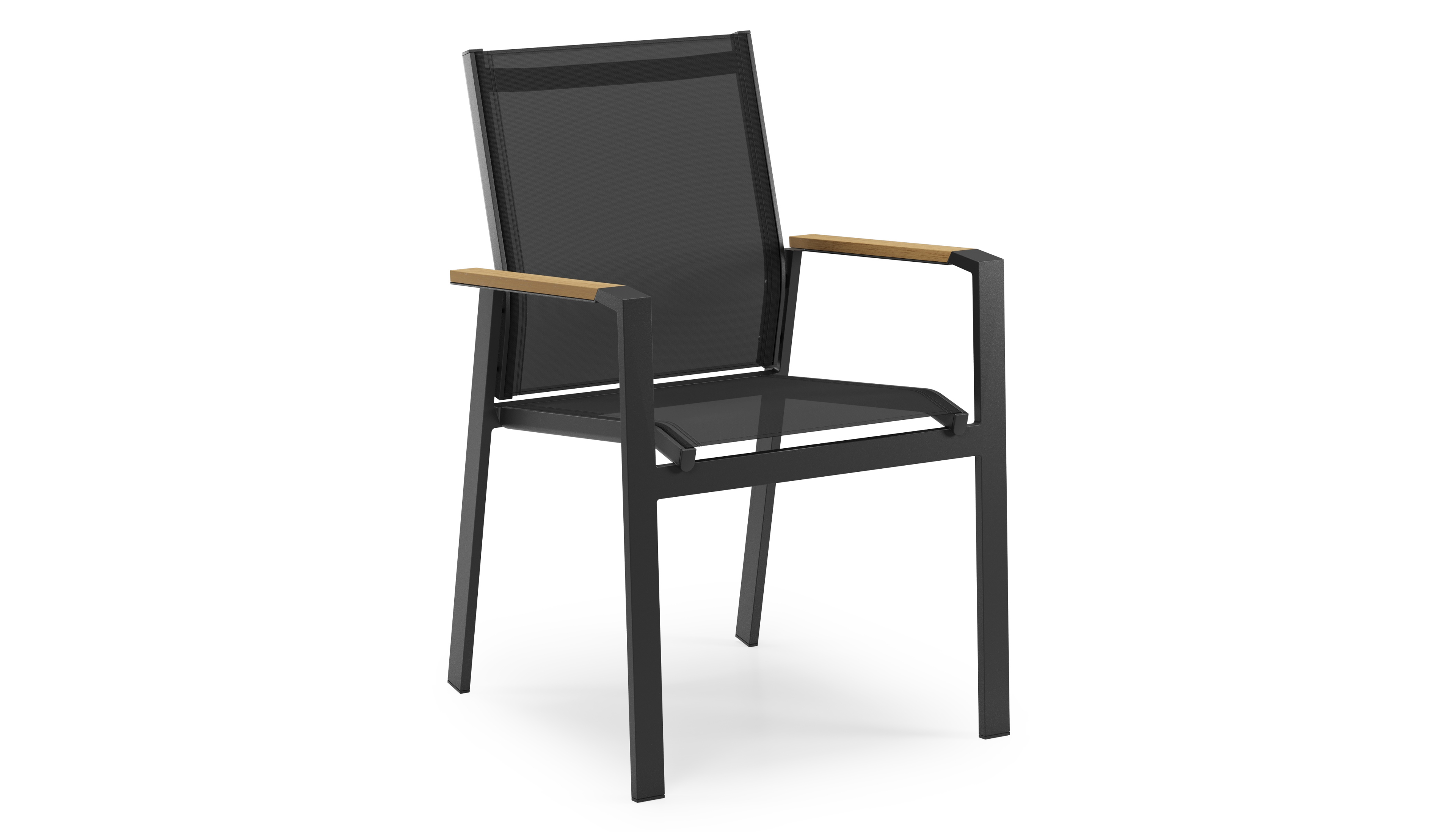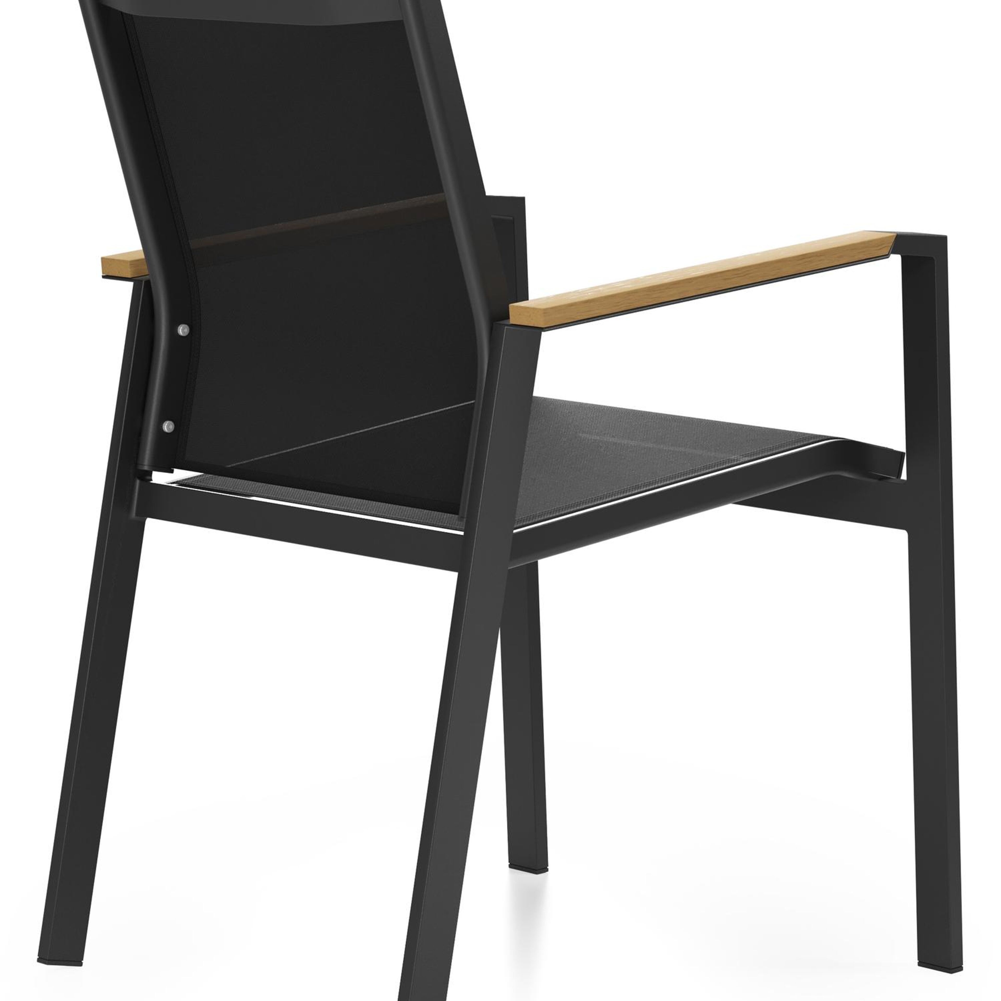 De zitting en rug zijn gemaakt uit stevige textilene, een stijlvol en onderhoudsvriendelijk materiaal. De stoel is stapelbaar en dus makkelijk op te bergen.