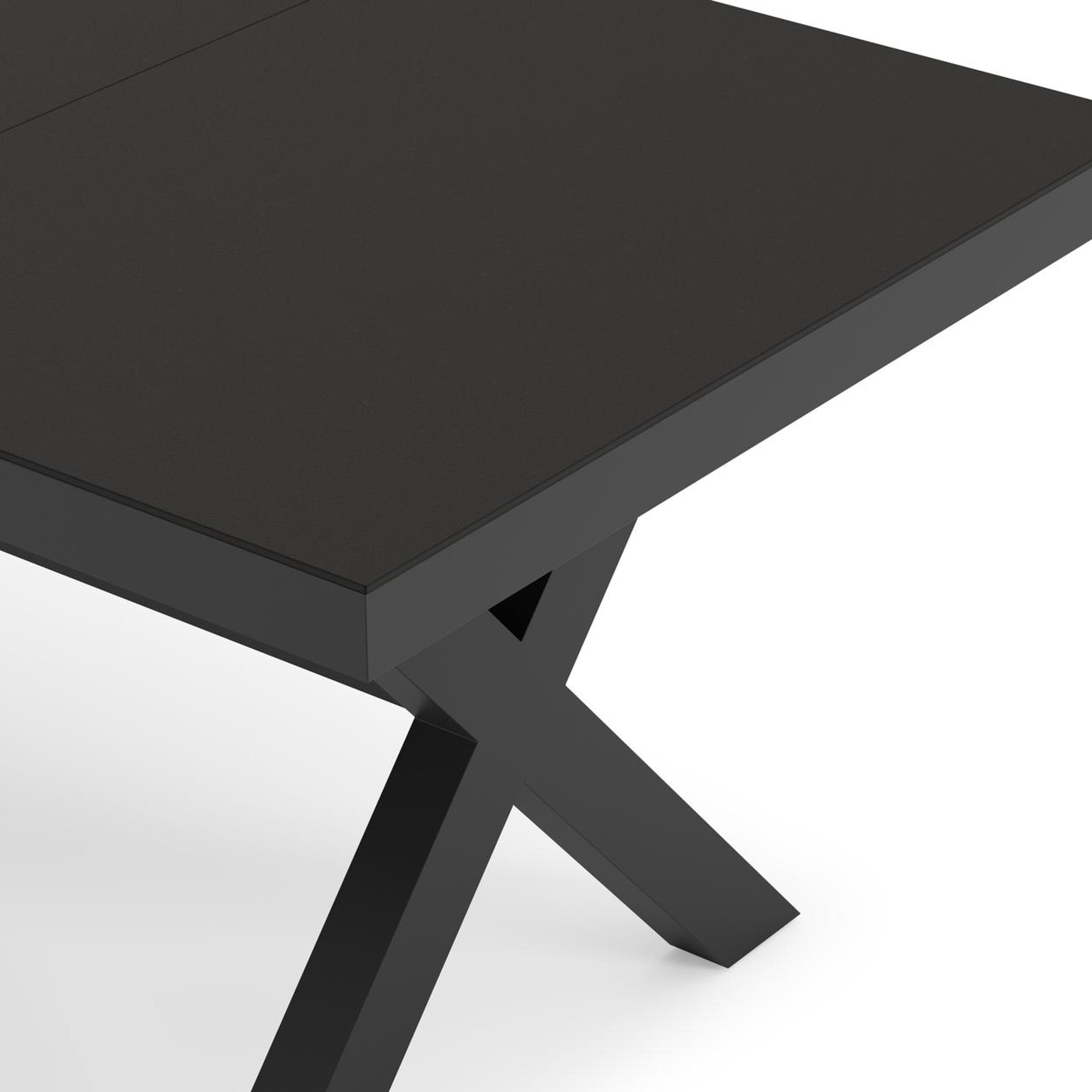 De Bahia tuintafel herken je aan de stevige look en kruispoot. Het frame waarop het tafelblad ligt, is robuust. In het midden van de tafel loopt een balk als extra ondersteuning van het frame.