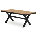 De Bahia tuintafel herken je aan de stevige look en kruispoot. Het frame waarop het tafelblad ligt, is robuust. In het midden van de tafel loopt een balk als extra ondersteuning van het frame.