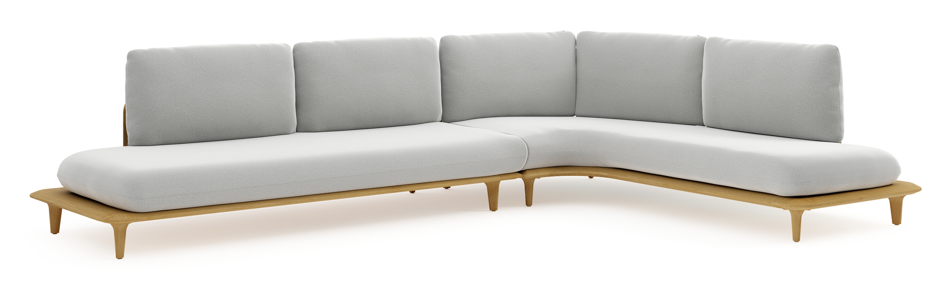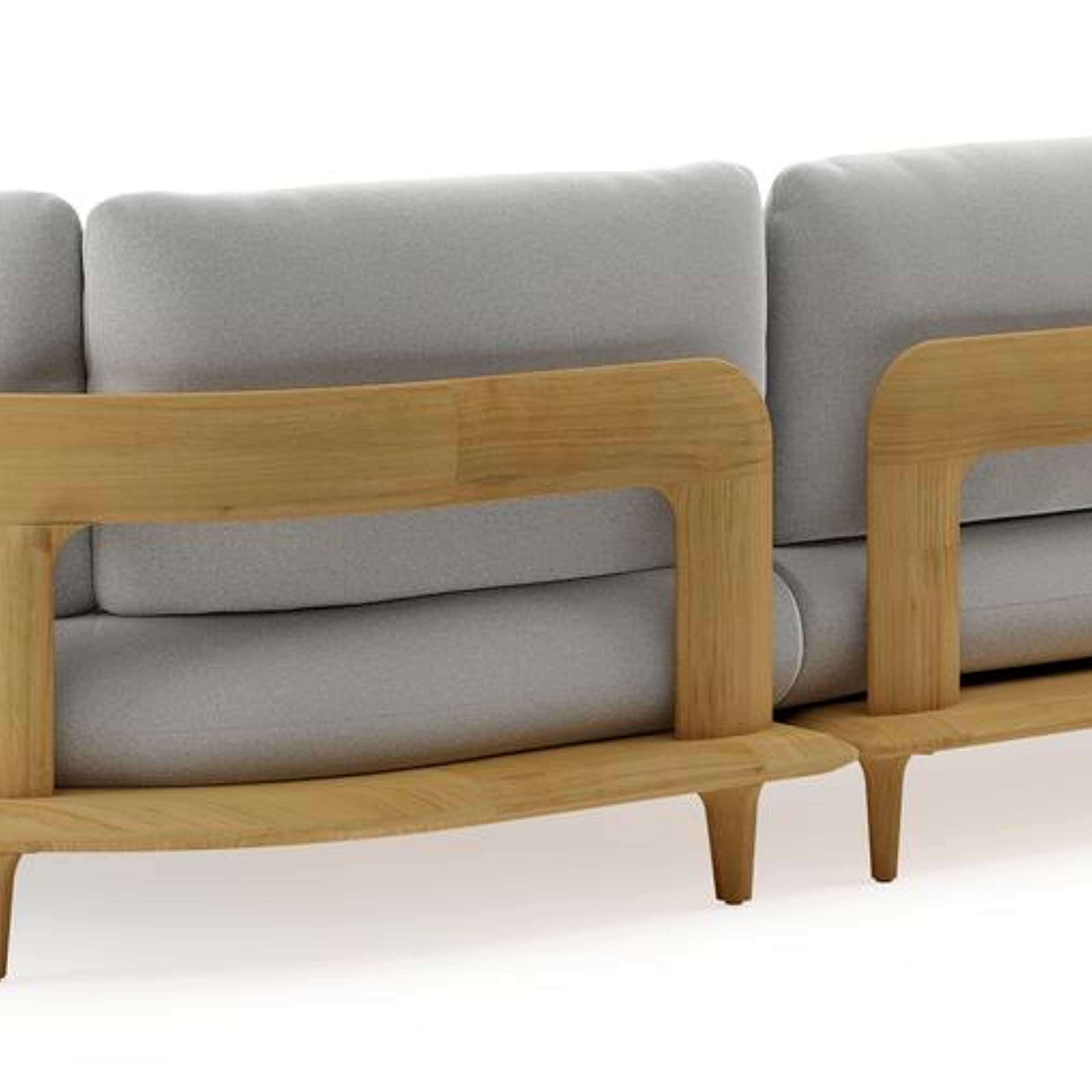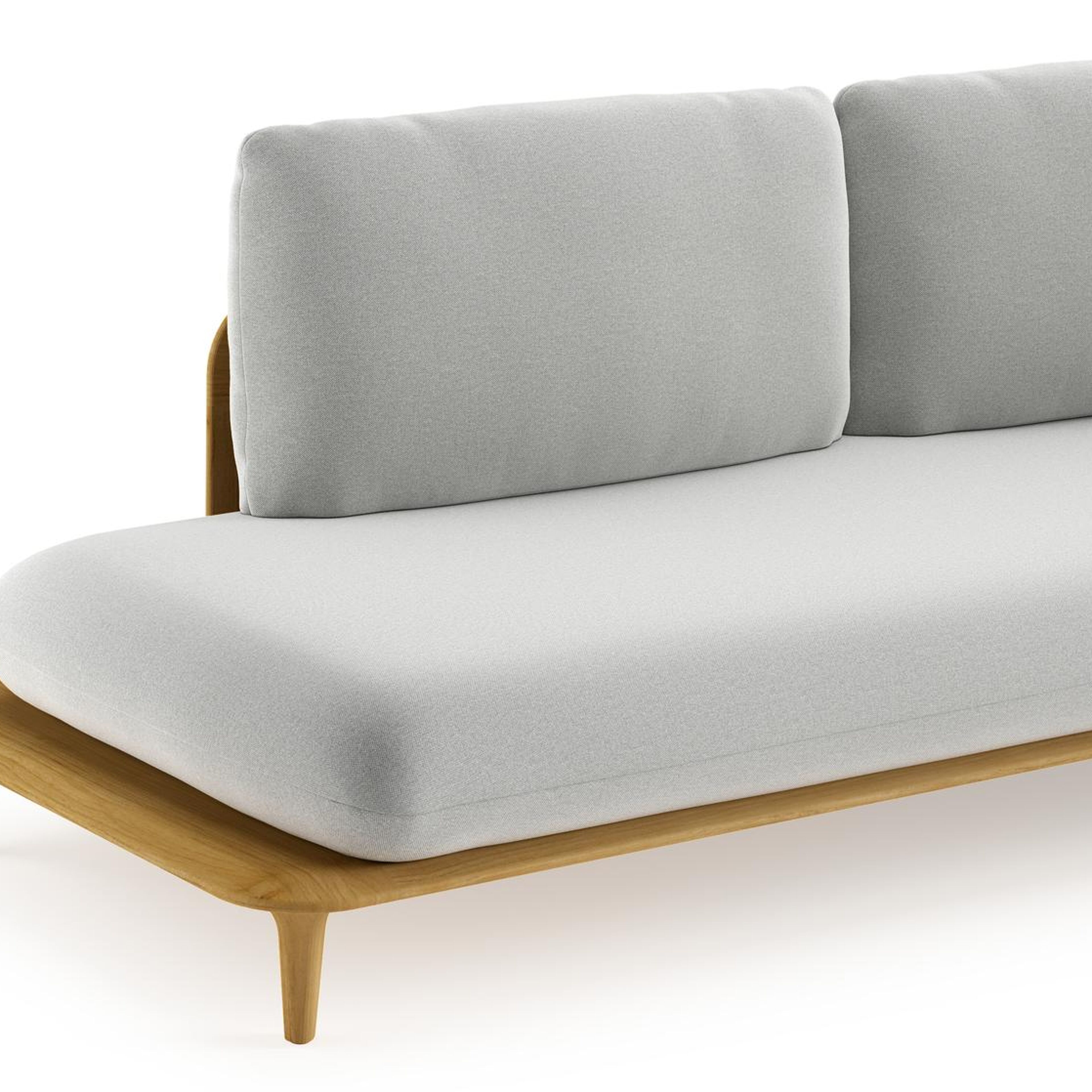 Bomero loungehoek in teak met natte grey chine all weather sunbrella® luxe kussen | Exterioo tuinmeubelen