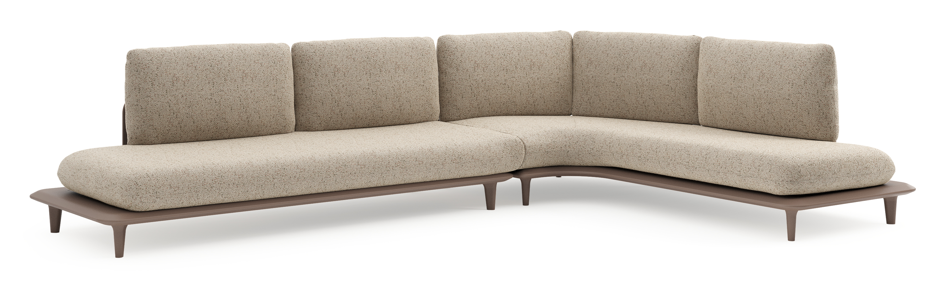 Bomero loungehoek in taupe aluminium met bora jungle all weather cosytica kussen | Exterioo tuinmeubelen