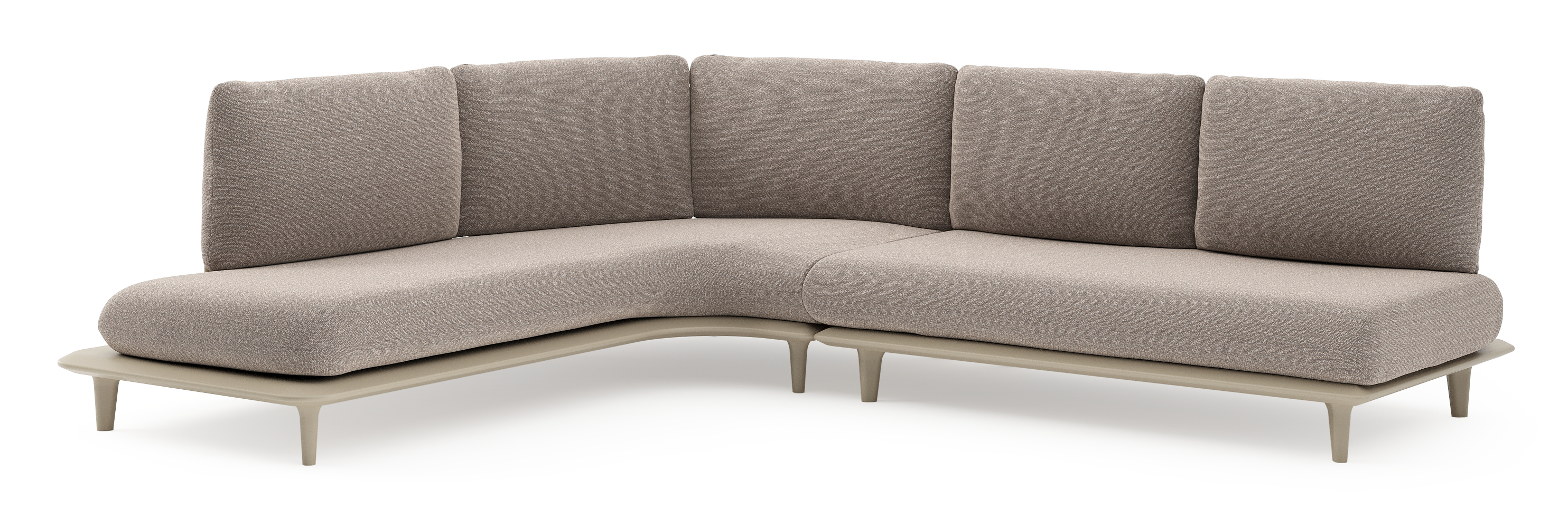 Bomero loungehoek in beige aluminium met wander manioc all weather sunbrella® luxe kussen | Exterioo tuinmeubelen