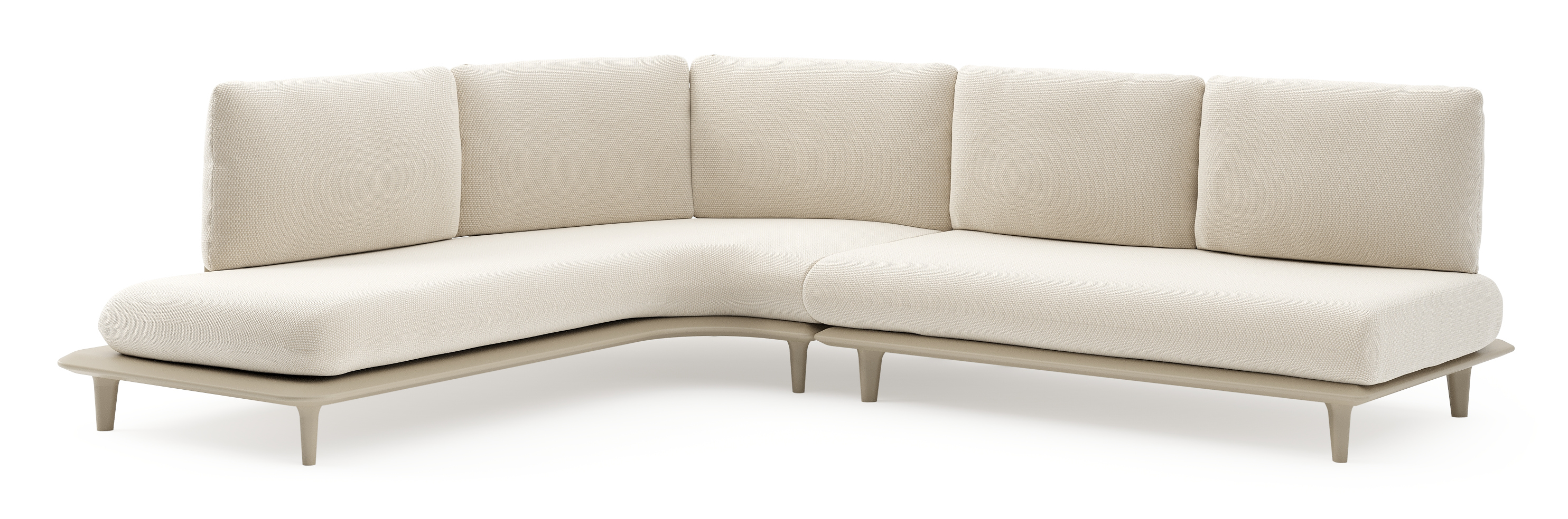 Bomero loungehoek in beige aluminium met althea off white all weather cosytica kussen | Exterioo tuinmeubelen