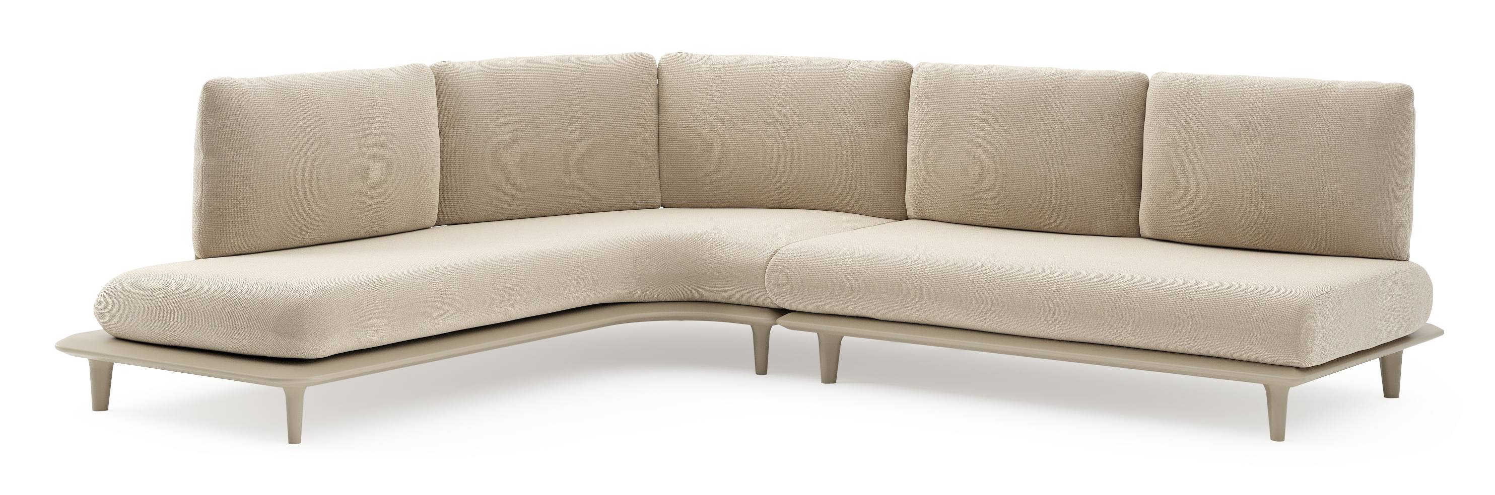 Bomero loungehoek in beige aluminium met althea chalk all weather cosytica kussen | Exterioo tuinmeubelen