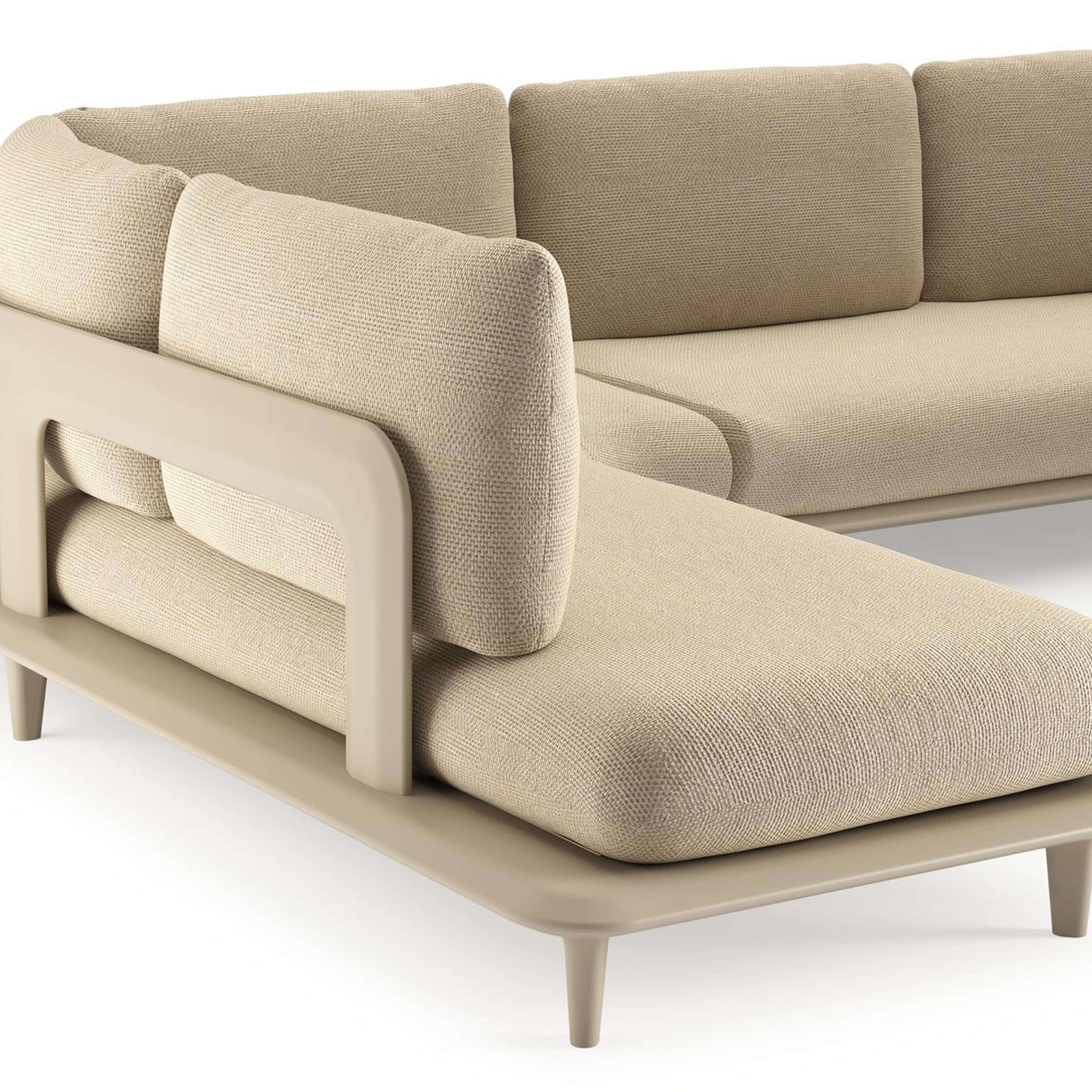Bomero loungehoek in beige aluminium met althea camel all weather cosytica kussen | Exterioo tuinmeubelen